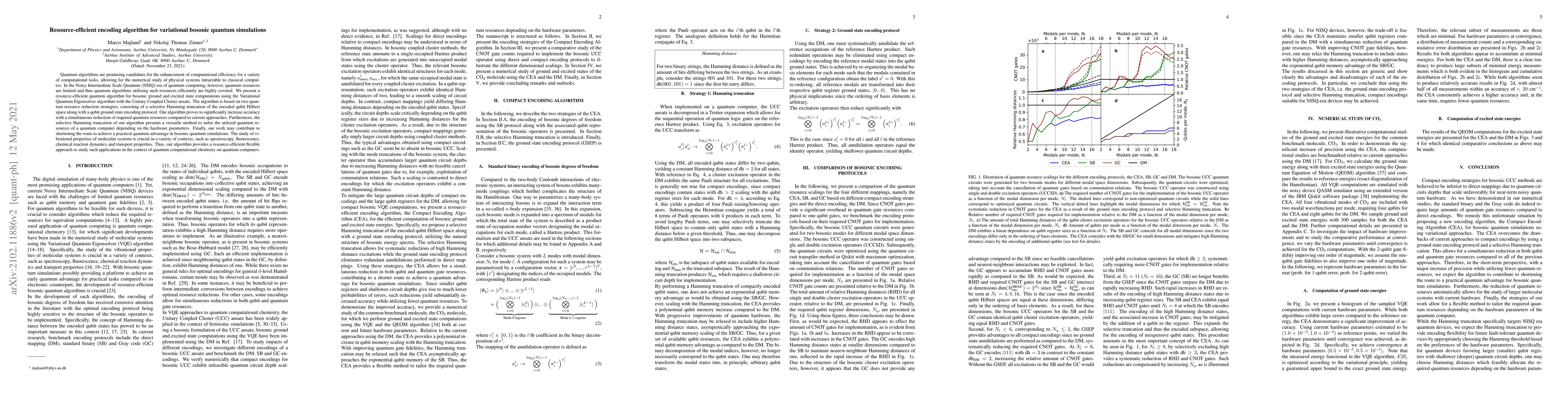 This paper introduces a resource-efficient quantum algorithm for simulating bosonic quantum systems using the Variational Quantum Eigensolver with Unitary Coupled Cluster ansatz. It employs selective Hamming truncation and qubit ground state encoding to reduce quantum resource usage while maintaining or improving accuracy.