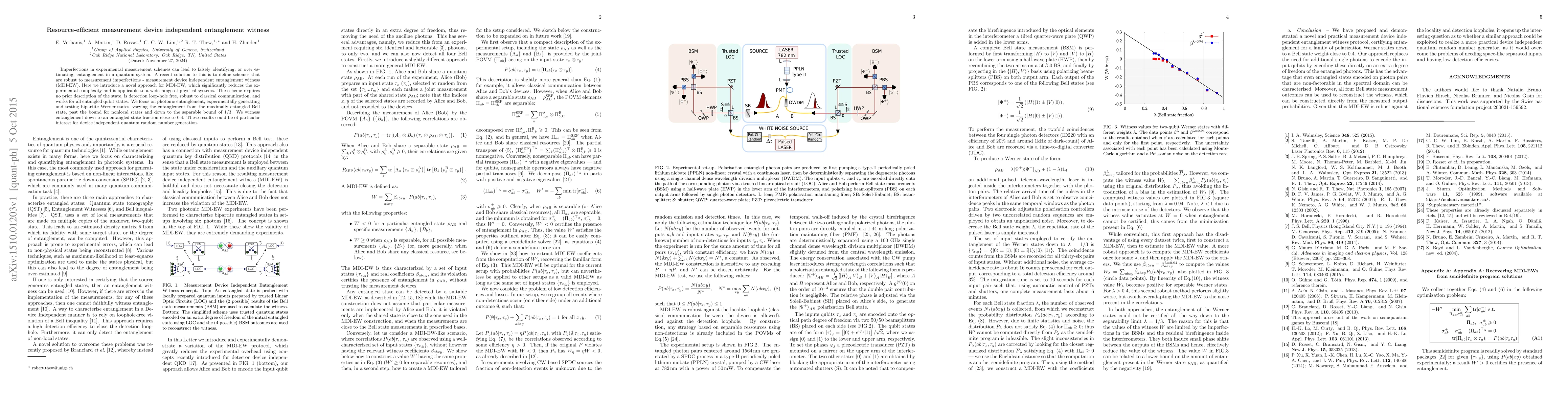 This paper proposes a novel, resource-efficient measurement device independent entanglement witness (MDI-EW) that reduces experimental complexity and is robust to measurement imperfections. The new scheme is detection loop-hole free and applicable to various physical systems, successfully witnessing entanglement in photonic Werner states down to a fraction close to 0.4.