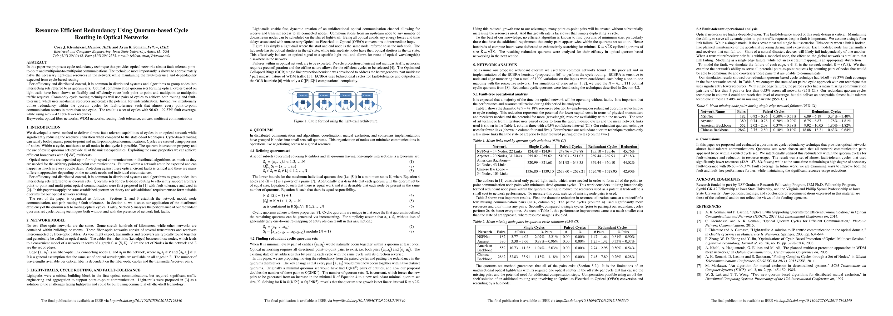This paper introduces a quorum-based cycle routing technique for optical networks that halves resource usage while maintaining fault-tolerance, employing quorum sets to efficiently route both point-to-point and multipoint-to-multipoint traffic with significant resource savings.