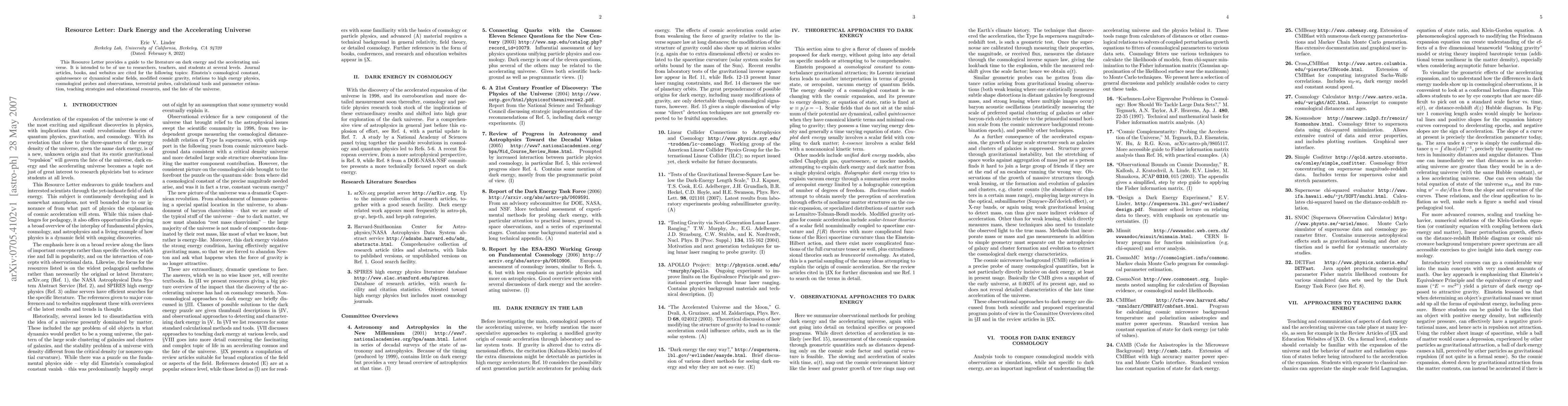 This Resource Letter provides a comprehensive guide to dark energy and the accelerating universe, covering key topics such as Einstein's cosmological constant, quintessence, and modified gravity theories, highlighting their implications for our understanding of the cosmos.