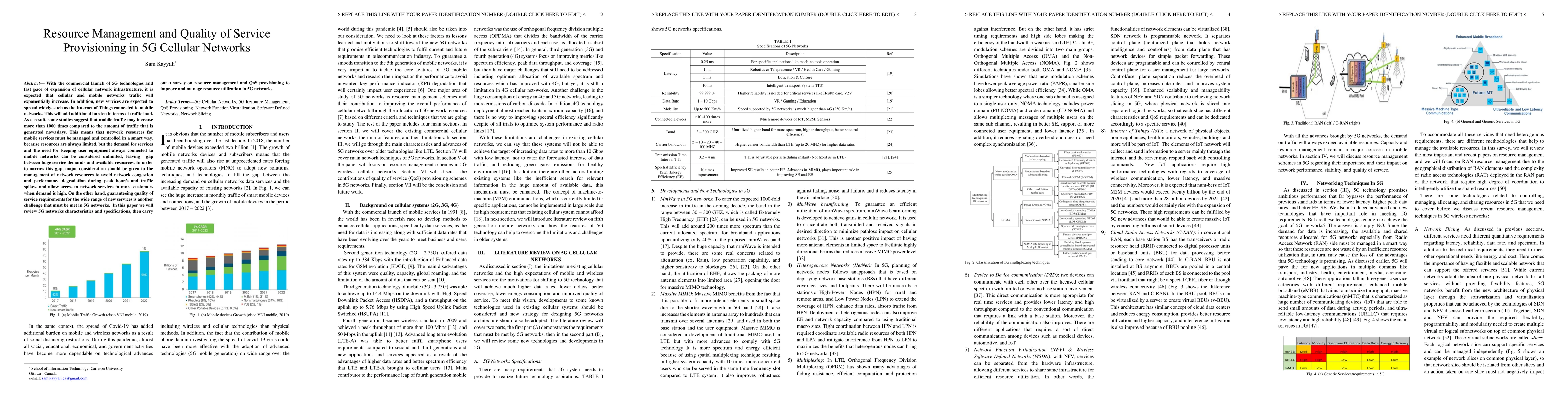 This paper reviews the characteristics and specifications of 5G cellular networks, focusing on the challenges of managing limited resources amidst exponentially increasing traffic demands and guaranteeing quality of service (QoS) for a wide range of new services. It surveys strategies for effective resource management and QoS provisioning to enhance network performance and user experience.