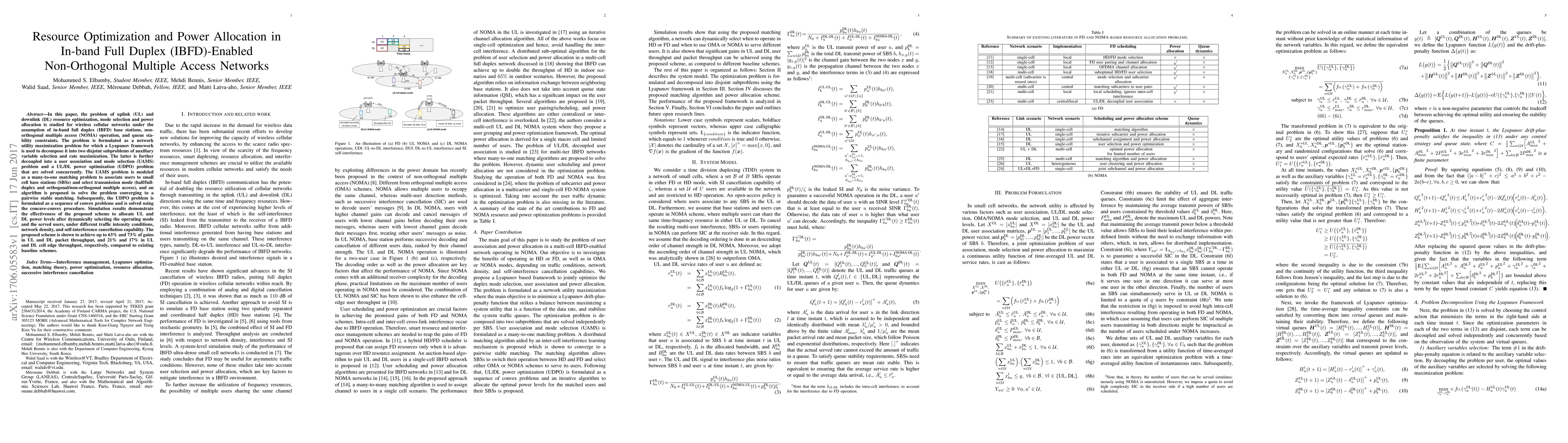 This paper addresses resource optimization, mode selection, and power allocation in in-band full duplex (IBFD)-enabled non-orthogonal multiple access (NOMA) networks. It proposes a Lyapunov framework to decompose the network utility maximization problem into user association and mode selection, and uplink/downlink power optimization, achieving significant throughput gains over baseline schemes.