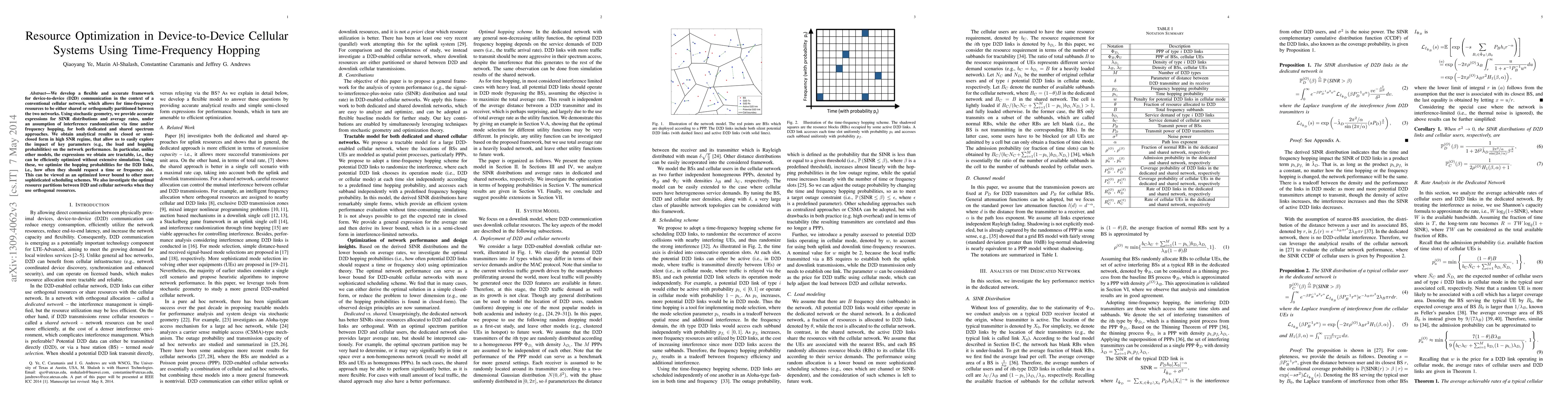 This paper develops a framework for optimizing time-frequency resources in D2D communications within a cellular network, using time-frequency hopping. It provides analytical expressions for SINR distributions and average rates, enabling optimization of hopping probabilities and resource partitioning between D2D and cellular networks.