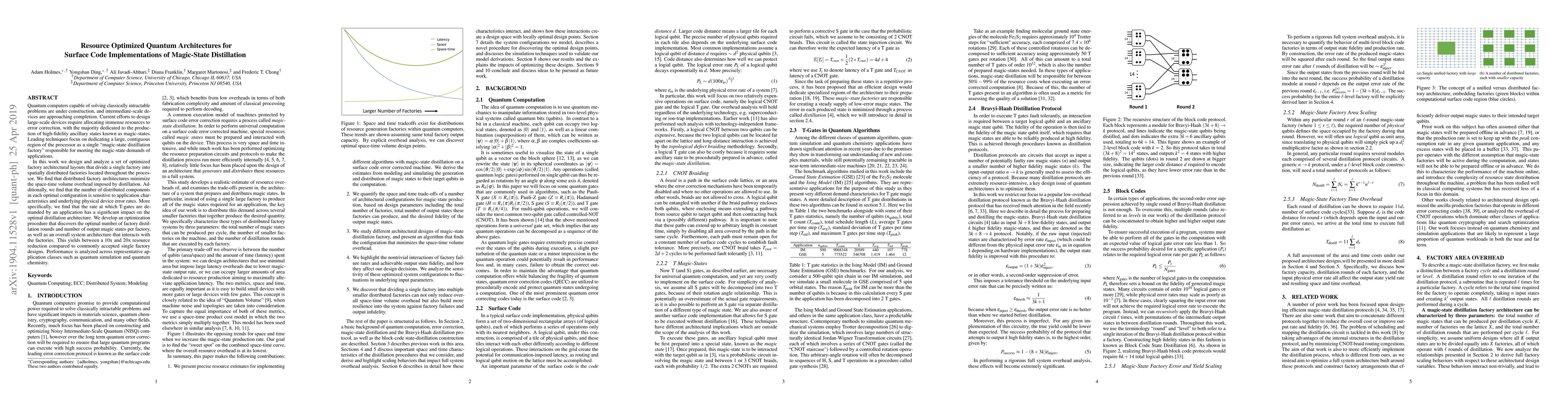 This paper proposes optimized architectures for quantum surface code implementations that distribute magic-state distillation factories across the processor, significantly reducing resource overhead compared to single factory designs. The optimal number of distributed factories is shown to depend on application-specific T-gate demands and device error rates, leading to a 10x to 20x resource reduction.