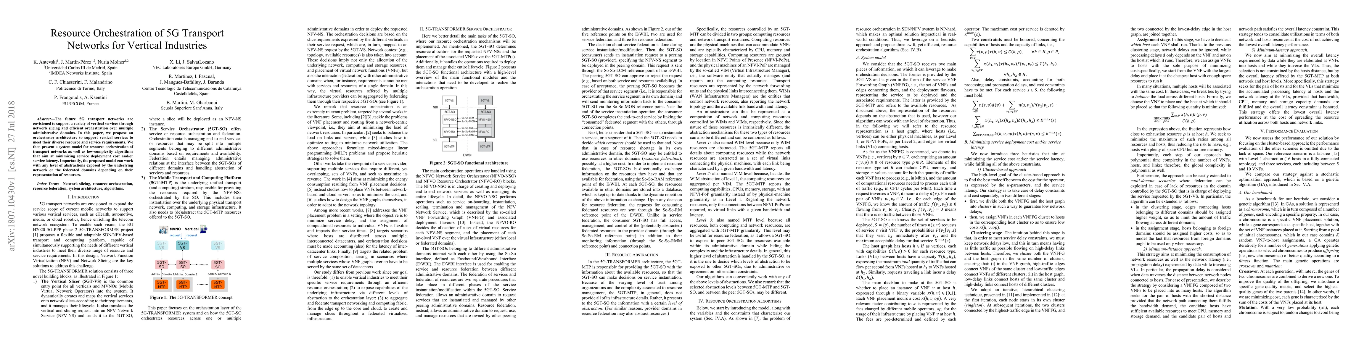 This paper proposes an orchestrator architecture for 5G transport networks to efficiently support diverse vertical services through network slicing. It introduces a system model and low-complexity algorithms aimed at minimizing deployment costs and latency, adaptable to various network abstractions.