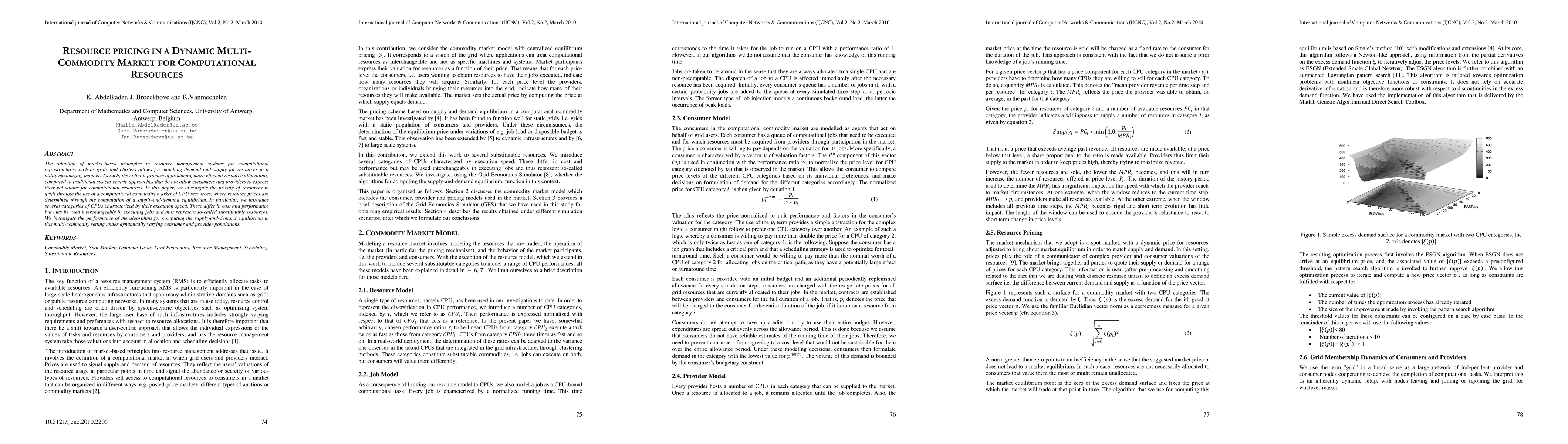 The adoption of market-based principles in resource management systems for computational infrastructures such as grids and clusters allows for matching demand and supply for resources in a utility maximizing manner. As such, they offer a promise of producing more efficient resource allocations, compared to traditional system-centric approaches that do not allow consumers and providers to express their valuations for computational resources. In this paper, we investigate the pricing of resources in grids through the use of a computational commodity market of CPU resources, where resource prices are determined through the computation of a supply-and-demand equilibrium. In particular, we introduce several categories of CPUs characterized by their execution speed. These differ in cost and performance but may be used interchangeably in executing jobs and thus represent so-called substitutable resources. We investigate the performance of the algorithms for computing the supply-and-demand equilibrium in this multi-commodity setting under dynamically varying consumer and provider populations.