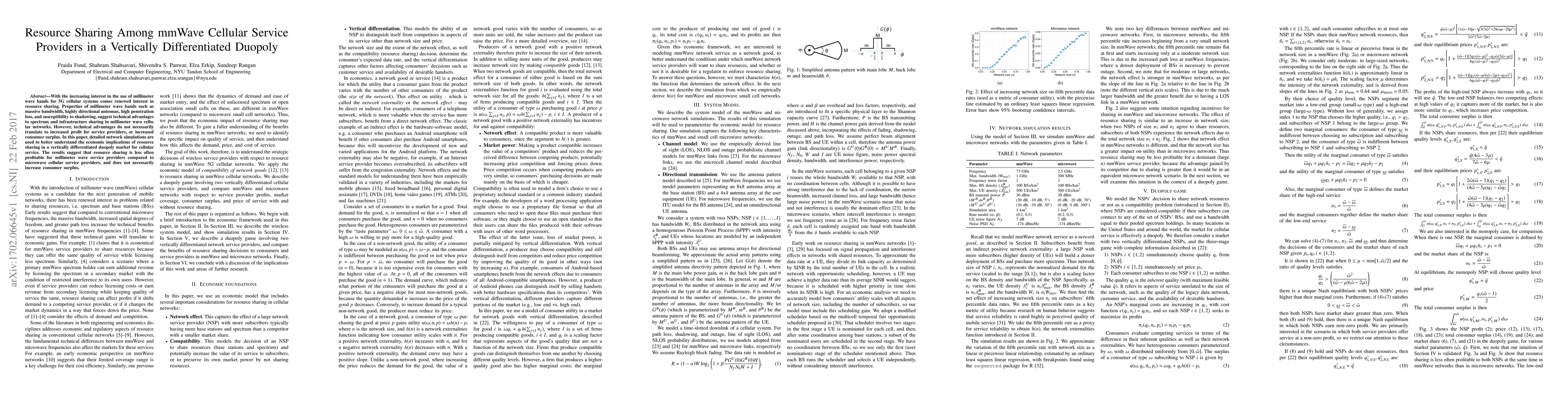 This paper explores the economic implications of resource sharing among millimeter wave cellular service providers in a vertically differentiated duopoly. Simulation results suggest that while technical advantages exist, resource sharing is less profitable for mmWave providers and does not necessarily enhance consumer surplus.
