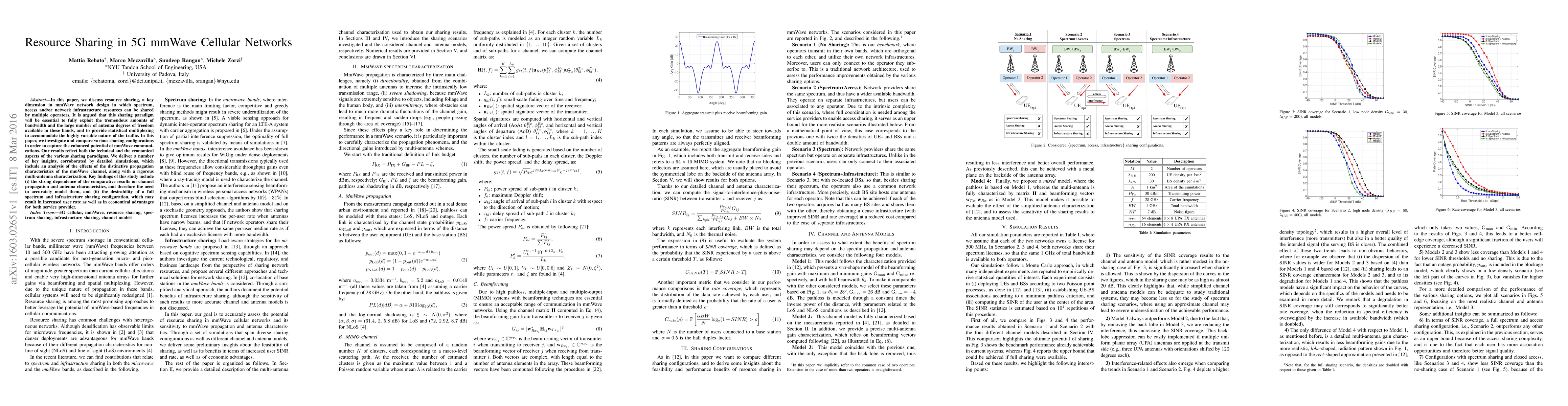 This paper explores resource sharing in 5G mmWave networks, emphasizing spectrum, access, and infrastructure sharing among multiple operators to maximize bandwidth and antenna capabilities. Key insights include the importance of accurately modeling channel and antenna characteristics, and the benefits of full spectrum and infrastructure sharing for enhanced user rates and economic advantages.