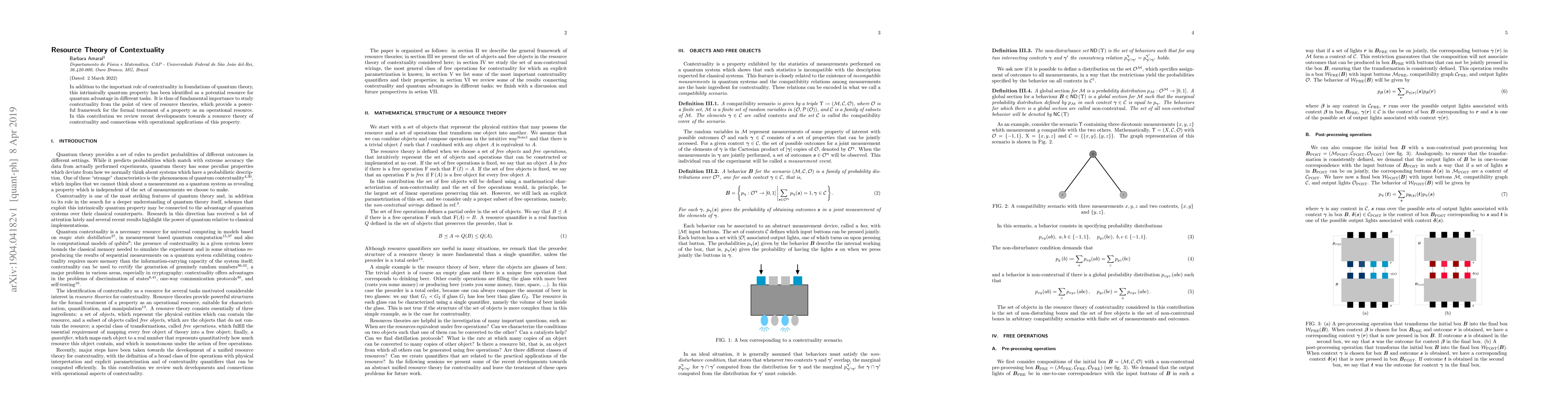 This paper reviews advancements in developing a resource theory of contextuality, emphasizing its potential for quantum advantage, and explores its operational applications within the framework of quantum theory.