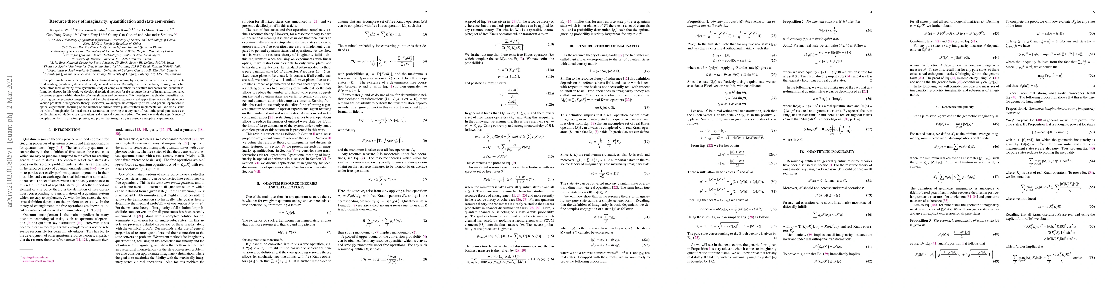 This paper develops theoretical methods for quantifying and converting quantum states based on the resource theory of imaginarity, focusing on geometric and robust imaginarity. It demonstrates the importance of complex numbers in quantum mechanics and shows that imaginarity is a valuable resource in optical experiments, particularly for local state discrimination.