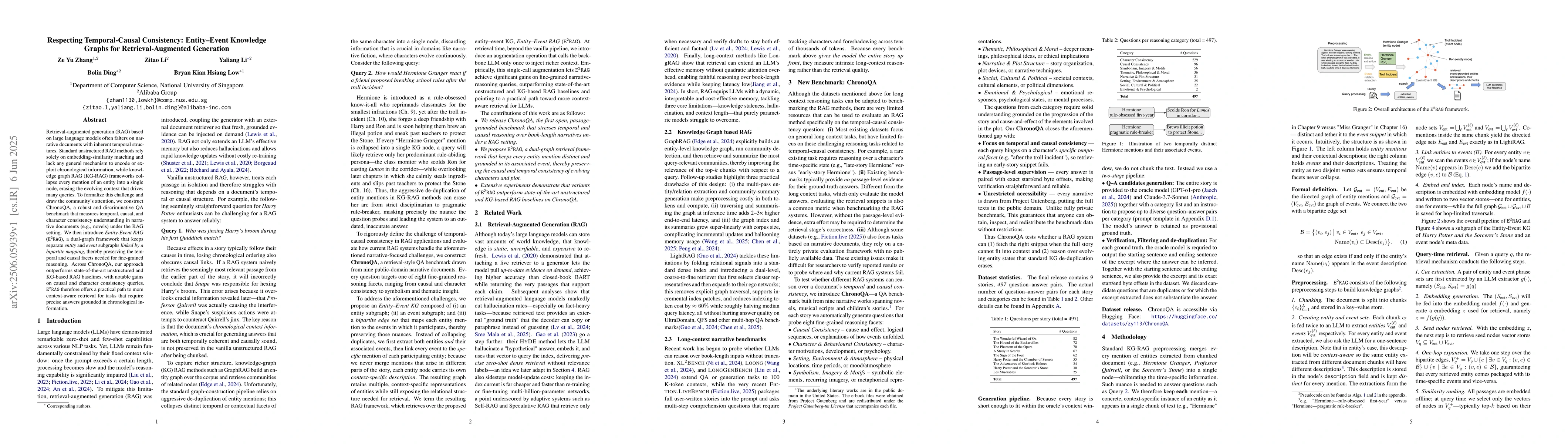 Retrieval-augmented generation (RAG) based on large language models often falters on narrative documents with inherent temporal structures. Standard unstructured RAG methods rely solely on embedding-similarity matching and lack any general mechanism to encode or exploit chronological information, while knowledge graph RAG (KG-RAG) frameworks collapse every mention of an entity into a single node, erasing the evolving context that drives many queries. To formalize this challenge and draw the community's attention, we construct ChronoQA, a robust and discriminative QA benchmark that measures temporal, causal, and character consistency understanding in narrative documents (e.g., novels) under the RAG setting. We then introduce Entity-Event RAG (E^2RAG), a dual-graph framework that keeps separate entity and event subgraphs linked by a bipartite mapping, thereby preserving the temporal and causal facets needed for fine-grained reasoning. Across ChronoQA, our approach outperforms state-of-the-art unstructured and KG-based RAG baselines, with notable gains on causal and character consistency queries. E^2RAG therefore offers a practical path to more context-aware retrieval for tasks that require precise answers grounded in chronological information.
