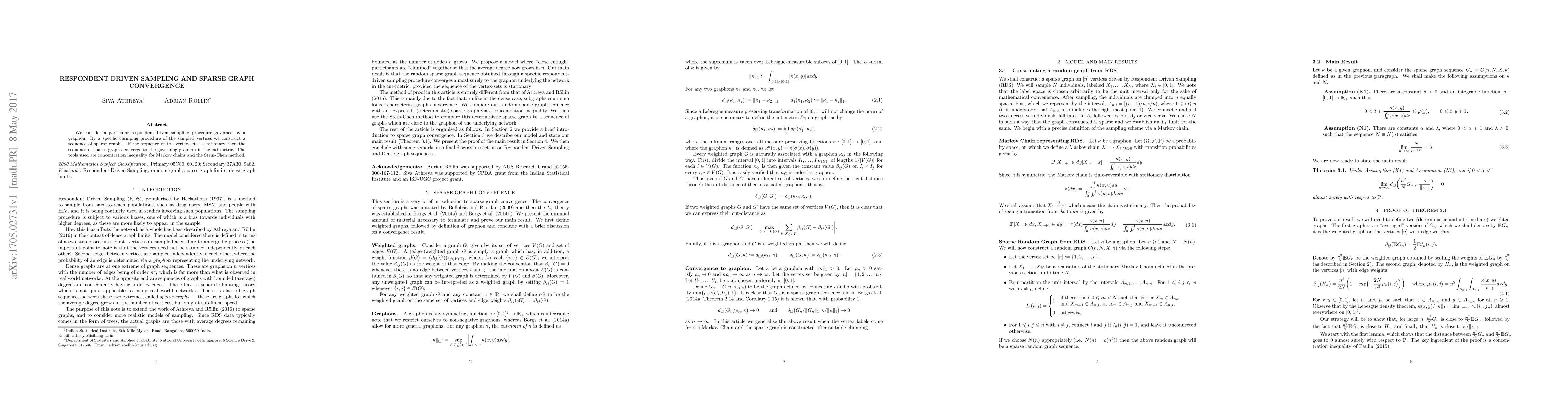 We consider a particular respondent-driven sampling procedure governed by a graphon. By a specific clumping procedure of the sampled vertices we construct a sequence of sparse graphs. If the sequence of the vertex-sets is stationary then the sequence of sparse graphs converge to the governing graphon in the cut-metric. The tools used are concentration inequality for Markov chains and the Stein-Chen method.