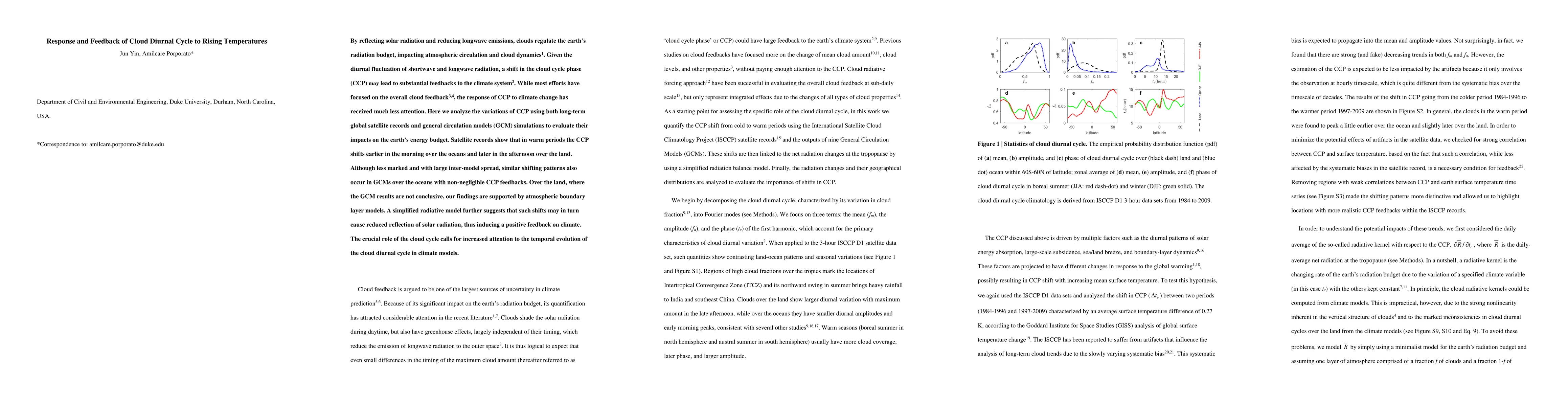 This paper investigates how the cloud diurnal cycle shifts in response to rising temperatures, finding that these shifts can lead to significant feedbacks in the climate system. Both satellite data and climate models indicate that cloud cycle phase shifts may reduce solar radiation reflection, potentially inducing a positive feedback mechanism.