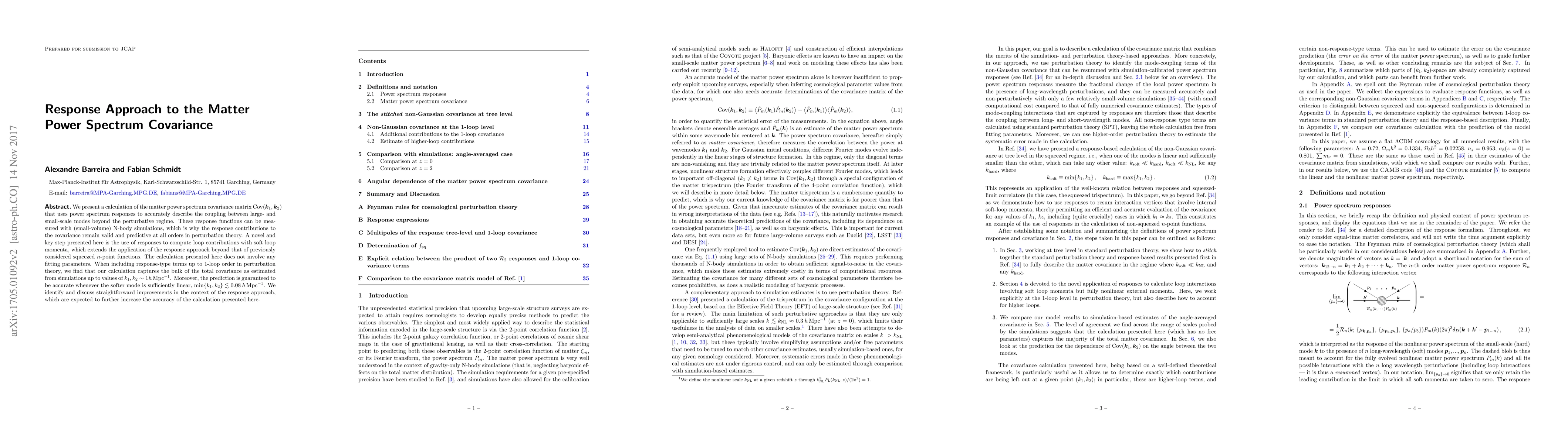 This paper calculates the matter power spectrum covariance matrix using response functions to describe the coupling between large- and small-scale modes beyond perturbation theory. The method captures the bulk of the covariance up to $k_1, k_2 \sim 1\ h/{\rm Mpc}$ without fitting parameters, and is accurate when the softer mode is linear, ${\rm min}\{k_1,k_2\} \lesssim 0.08\ h/{\rm Mpc}$.