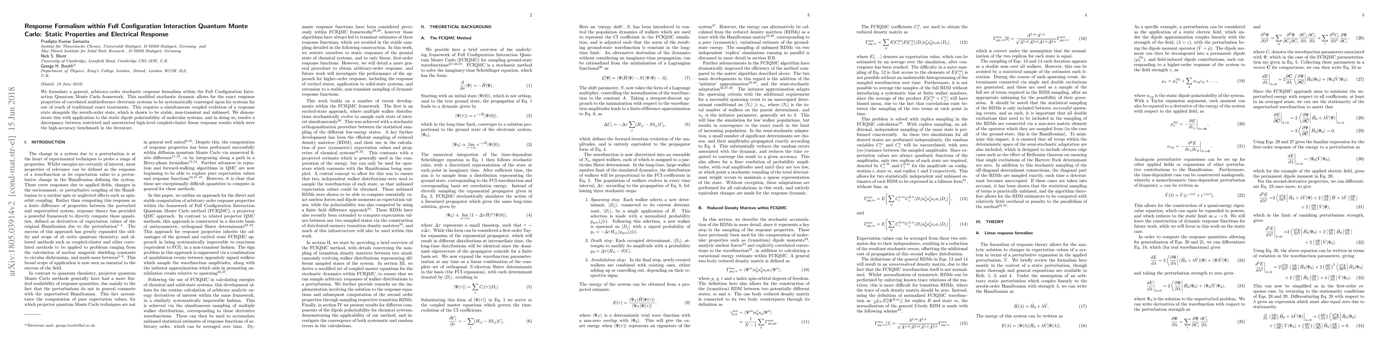 We formulate a general, arbitrary-order stochastic response formalism within the Full Configuration Interaction Quantum Monte Carlo framework. This modified stochastic dynamic allows for the exact response properties of correlated multireference electronic systems to be systematically converged upon for systems far out of reach of traditional exact treatments. This requires a simultaneous coupled evolution of a response state alongside the zeroth-order state, which is shown to be stable, non-transient and unbiased. We demonstrate this with application to the static dipole polarizability of molecular systems, and in doing so, resolve a discrepancy between restricted and unrestricted high-level coupled-cluster linear response results which were the high-accuracy benchmark in the literature.