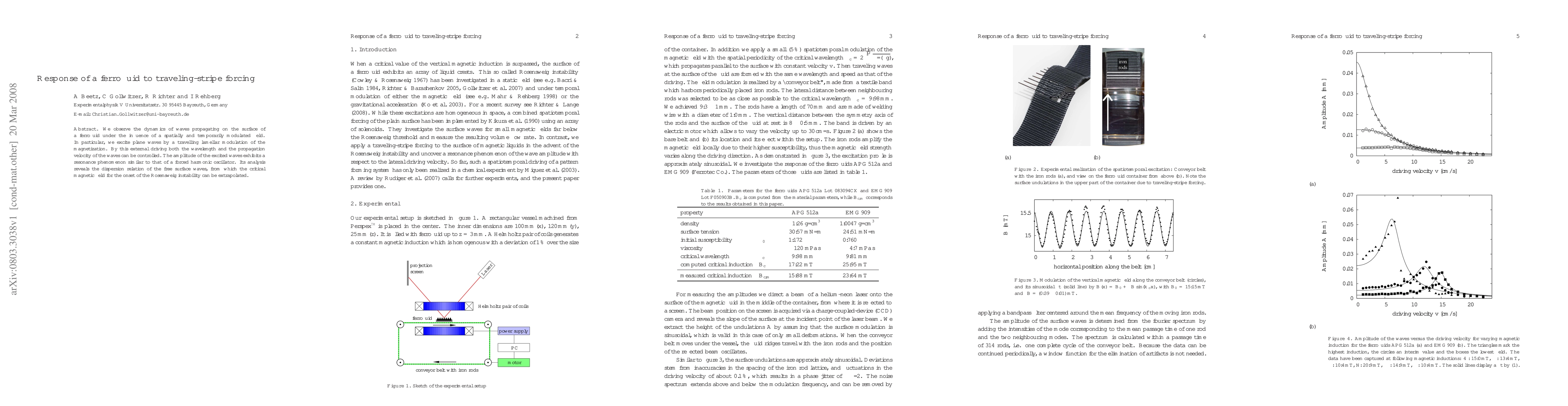 We observe the dynamics of waves propagating on the surface of a ferrofluid under the influence of a spatially and temporarily modulated field. In particular, we excite plane waves by a travelling lamellar modulation of the magnetization. By this external driving both the wavelength and the propagation velocity of the waves can be controlled. The amplitude of the excited waves exhibits a resonance phenomenon similar to that of a forced harmonic oscillator. Its analysis reveals the dispersion relation of the free surface waves, from which the critical magnetic field for the onset of the Rosensweig instability can be extrapolated.