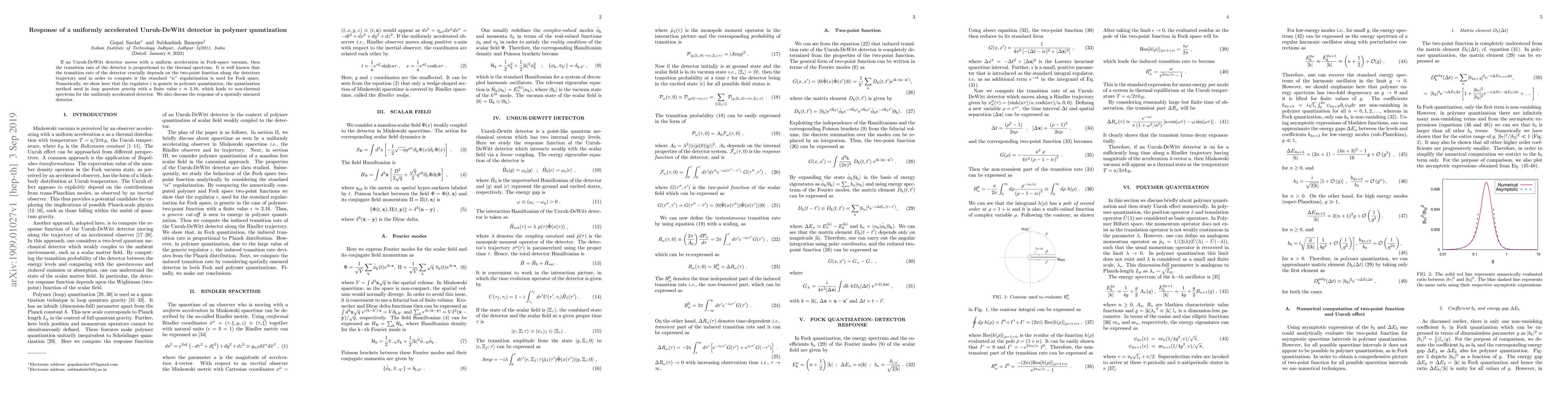 If an Unruh-DeWitt detector moves with a uniform acceleration in Fock-space vacuum, then the transition rate of the detector is proportional to the thermal spectrum. It is well known that the transition rate of the detector crucially depends on the two-point function along the detectors trajectory and in order to compute it the standard "$i \epsilon$" regularization is used for Fock space. Numerically, we show here that the regulator $\epsilon$ is generic in polymer quantization, the quantization method used in \emph{loop quantum gravity} with a finite value $\epsilon \approx 2.16$, which leads to non-thermal spectrum for the uniformly accelerated detector. We also discuss the response of a spatially smeared detector.