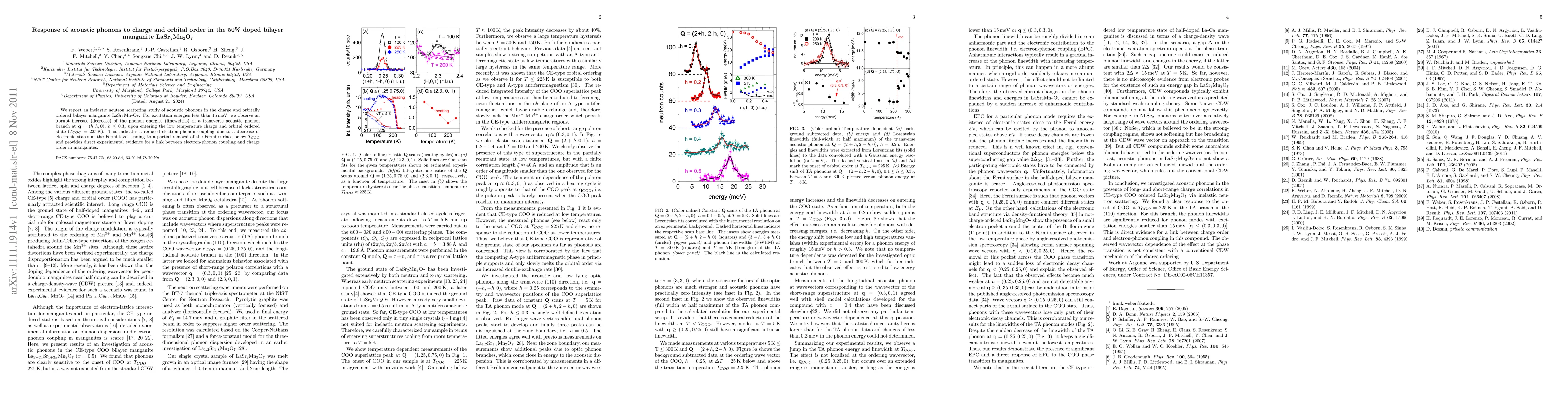We report an inelastic neutron scattering study of acoustic phonons in the charge and orbitally ordered bilayer manganite LaSr$_2$Mn$_2$O$_7$. For excitation energies less than $15\,\rm{meV}$, we observe an abrupt increase (decrease) of the phonon energies (linewidths) of a transverse acoustic phonon branch at $\mathbf{q} = (h, h, 0)$, $h\le0.3$, upon entering the low temperature charge and orbital ordered state ($T_{COO} = 225\,\rm{K}$). This indicates a reduced electron-phonon coupling due to a decrease of electronic states at the Fermi level leading to a partial removal of the Fermi surface below $T_{COO}$ and provides direct experimental evidence for a link between electron-phonon coupling and charge order in manganites.