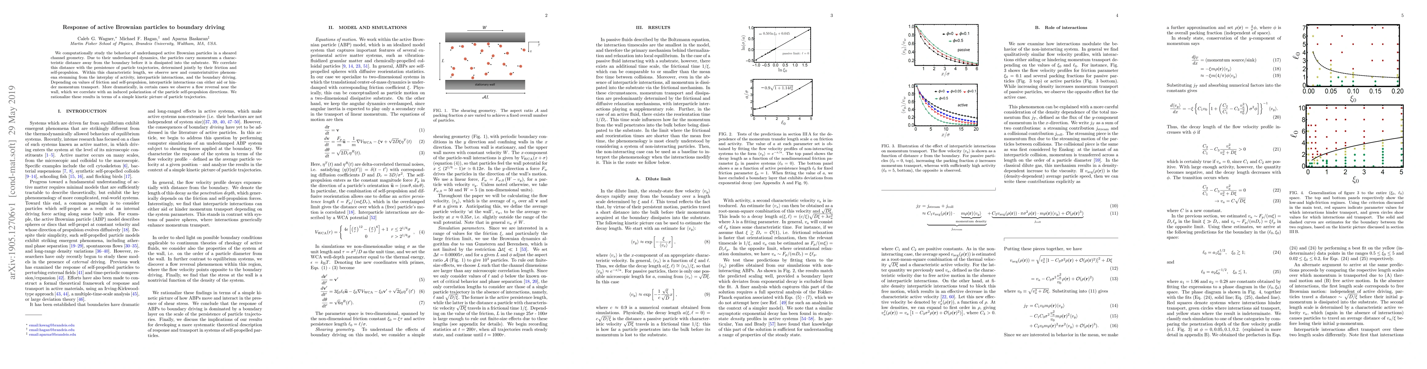 We computationally study the behavior of underdamped active Brownian particles in a sheared channel geometry. Due to their underdamped dynamics, the particles carry momentum a characteristic distance away from the boundary before it is dissipated into the substrate. We correlate this distance with the persistence of particle trajectories, determined jointly by their friction and self-propulsion. Within this characteristic length, we observe new and counterintuitive phenomena stemming from the interplay of activity, interparticle interactions, and the boundary driving. Depending on values of friction and self-propulsion, interparticle interactions can either aid or hinder momentum transport. More dramatically, in certain cases we observe a flow reversal near the wall, which we correlate with an induced polarization of the particle self-propulsion directions. We rationalize these results in terms of a simple kinetic picture of particle trajectories.