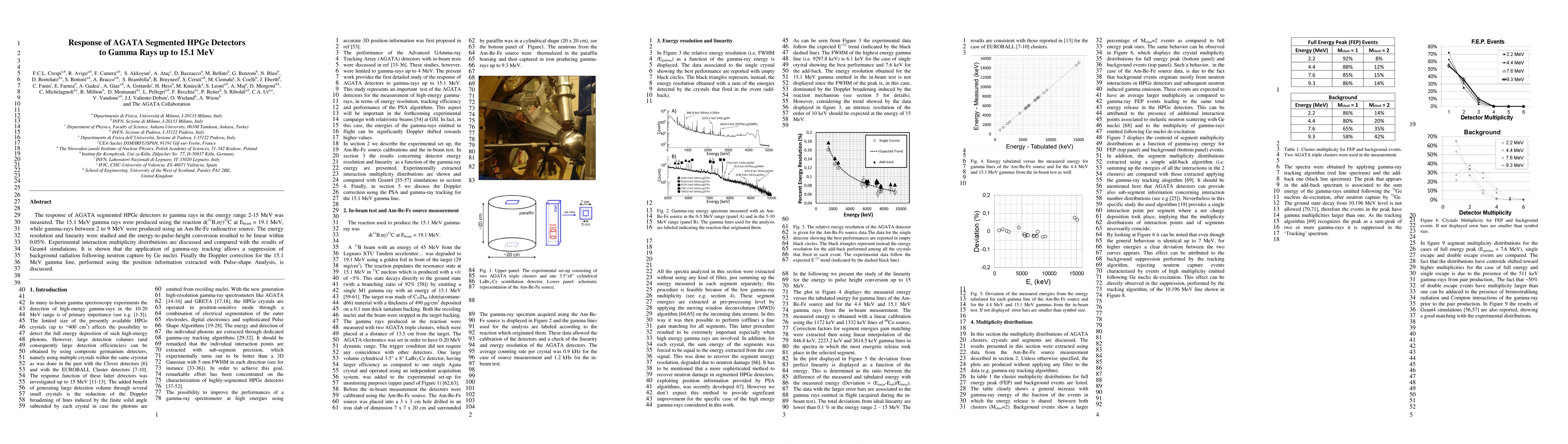 The response of AGATA segmented HPGe detectors to gamma rays in the energy range 2-15 MeV was measured. The 15.1 MeV gamma rays were produced using the reaction d(11B,ng)12C at Ebeam = 19.1 MeV, while gamma-rays between 2 to 9 MeV were produced using an Am-Be-Fe radioactive source. The energy resolution and linearity were studied and the energy-to-pulse-height conversion resulted to be linear within 0.05%. Experimental interaction multiplicity distributions are discussed and compared with the results of Geant4 simulations. It is shown that the application of gamma-ray tracking allows a suppression of background radiation following neutron capture by Ge nuclei. Finally the Doppler correction for the 15.1 MeV gamma line, performed using the position information extracted with Pulse-shape Analysis, is discussed.