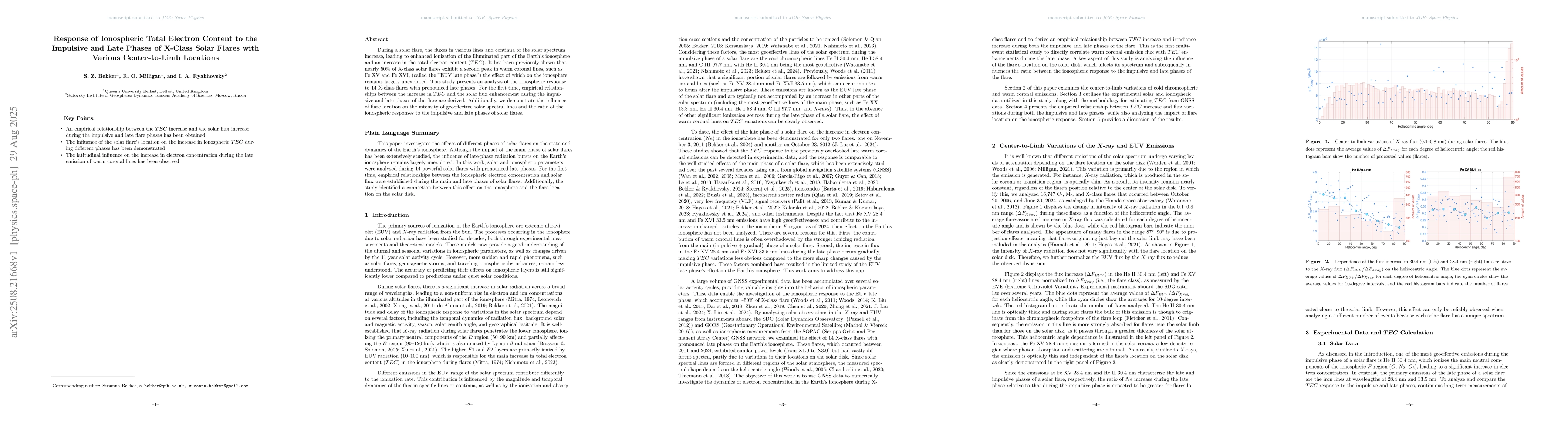 During a solar flare, the fluxes in various lines and continua of the solar spectrum increase, leading to enhanced ionization of the illuminated part of the Earth's ionosphere and an increase in the total electron content (TEC). It has been previously shown that nearly 50% of X-class solar flares exhibit a second peak in warm coronal lines, such as FeXV and FeXVI (called the 'EUV late phase'), the effect of which on the ionosphere remains largely unexplored. This study presents an analysis of the ionospheric response to 14 X-class flares with pronounced late phases. For the first time, empirical relationships between the increase in TEC and the solar flux enhancement during the impulsive and late phases of the flare are derived. Additionally, we demonstrate the influence of flare location on the intensity of geoeffective solar spectral lines and the ratio of the ionospheric responses to the impulsive and late phases of solar flares.
