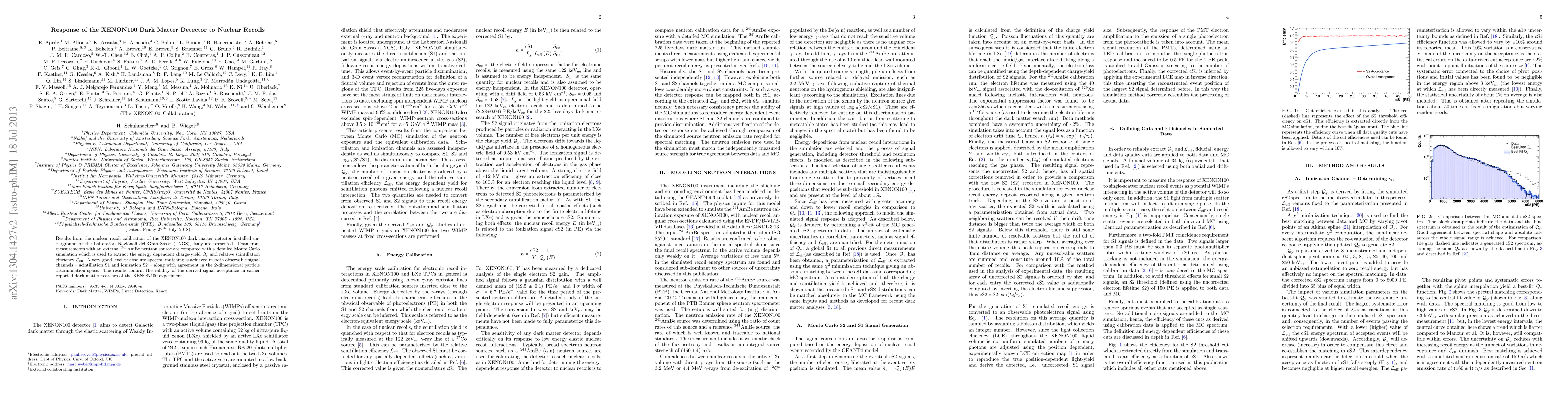 Results from the nuclear recoil calibration of the XENON100 dark matter detector installed underground at the Laboratori Nazionali del Gran Sasso (LNGS), Italy are presented. Data from measurements with an external 241AmBe neutron source are compared with a detailed Monte Carlo simulation which is used to extract the energy dependent charge-yield Qy and relative scintillation efficiency Leff. A very good level of absolute spectral matching is achieved in both observable signal channels - scintillation S1 and ionization S2 - along with agreement in the 2-dimensional particle discrimination space. The results confirm the validity of the derived signal acceptance in earlier reported dark matter searches of the XENON100 experiment.