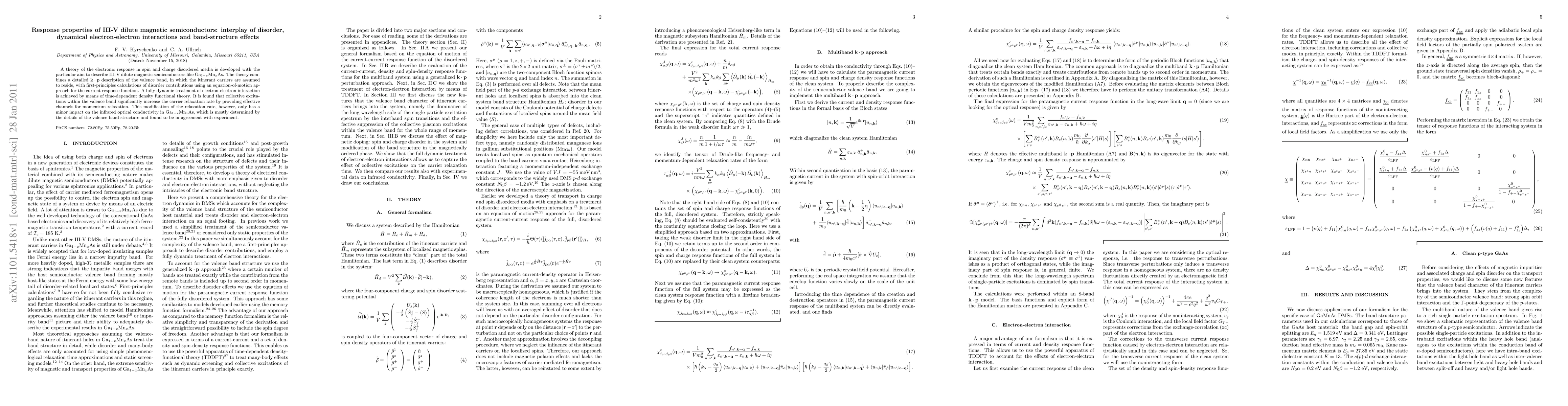 A theory of the electronic response in spin and charge disordered media is developed with the particular aim to describe III-V dilute magnetic semiconductors like GaMnAs. The theory combines a detailed k.p description of the valence band, in which the itinerant carriers are assumed to reside, with first-principles calculations of disorder contributions using an equation-of-motion approach for the current response function. A fully dynamic treatment of electron-electron interaction is achieved by means of time-dependent density functional theory. It is found that collective excitations within the valence band significantly increase the carrier relaxation rate by providing effective channels for momentum relaxation. This modification of the relaxation rate, however, only has a minor impact on the infrared optical conductivity in GaMnAs, which is mostly determined by the details of the valence band structure and found to be in agreement with experiment.