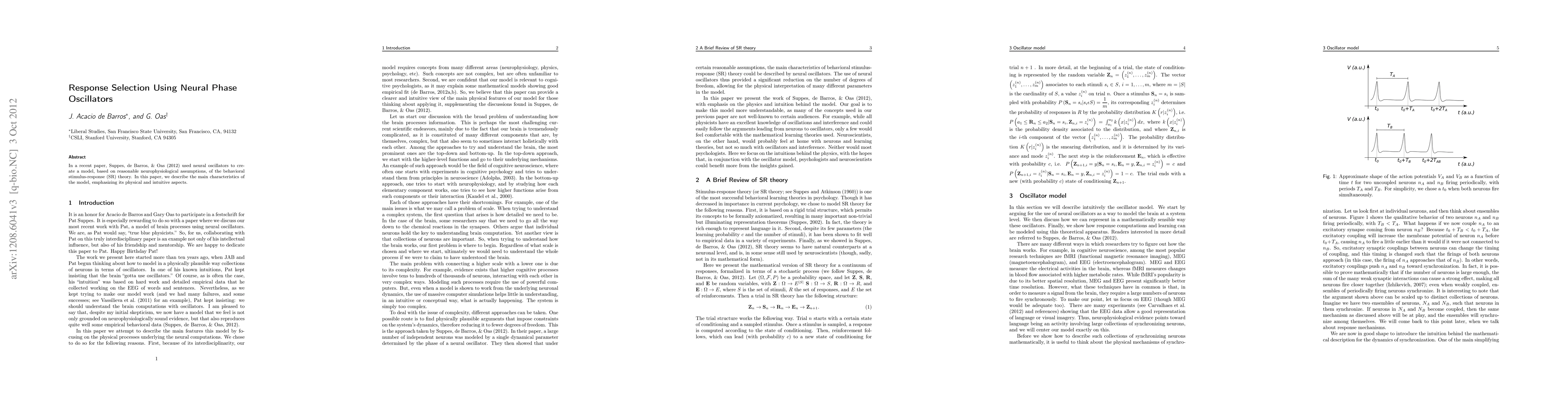 In a recent paper, Suppes et al. (2012) [arXiv:arXiv:1010.3063] used neural oscillators to create a model, based on reasonable neurophysiological assumptions, of the behavioral stimulus-response (SR) theory. In this paper, we describe the model in a less mathematical and more physical and intuitive way.
