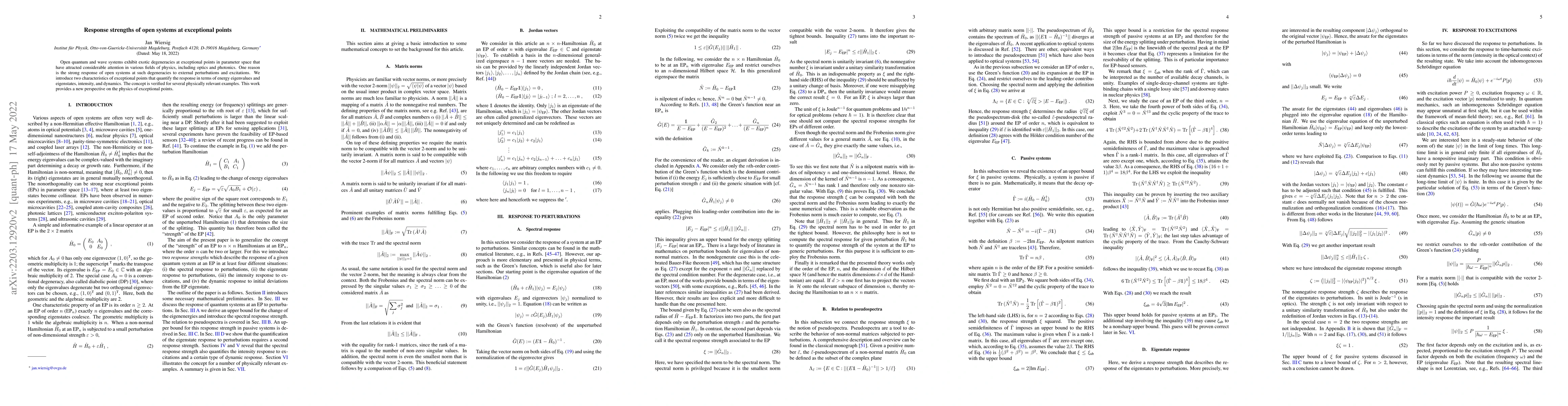 This paper introduces two characteristics to quantify the strong response of open quantum and wave systems to external perturbations at exceptional points, verified through various physical examples, offering a new perspective on the physics of these phenomena.