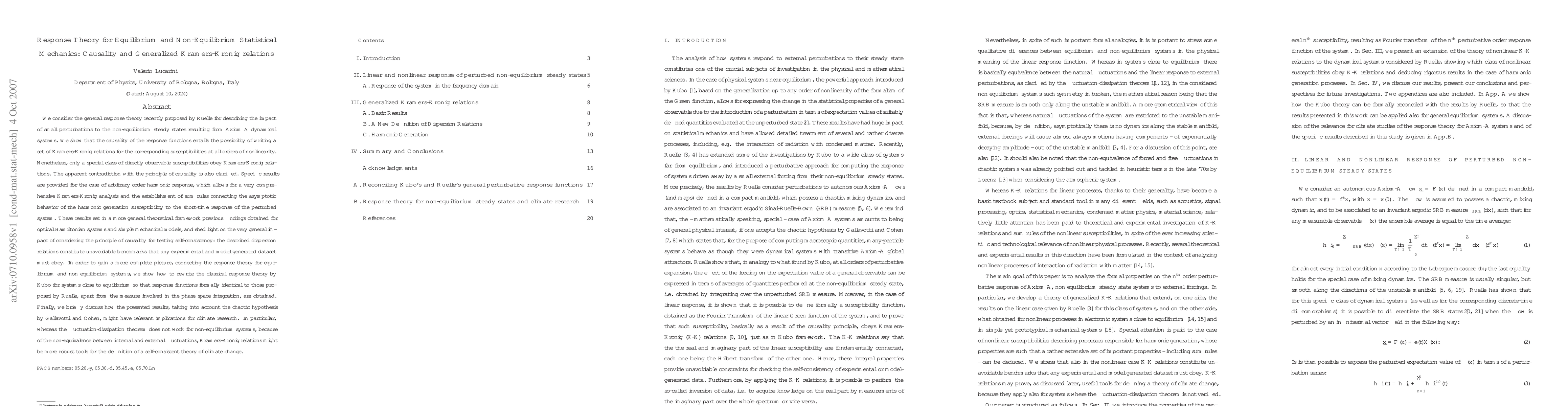 This paper extends the response theory of Ruelle to non-equilibrium systems, establishing generalized Kramers-Kronig relations for susceptibilities under causality, and provides comprehensive sum rules for harmonic response. It connects equilibrium and non-equilibrium response functions, suggesting Kramers-Kronig relations as robust tools for climate change modeling.
