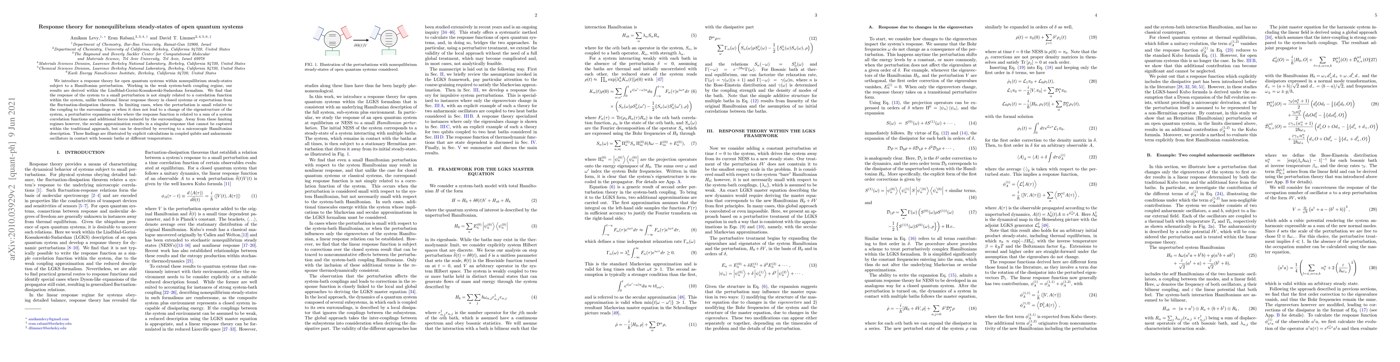 This paper develops a response theory for nonequilibrium steady-states in open quantum systems under Hamiltonian perturbations, revealing that the system's response deviates from traditional linear response theory due to coupling with the environment. It identifies conditions under which a perturbative expansion is valid, but highlights that in more complex scenarios, a microscopic Hamiltonian description is necessary.