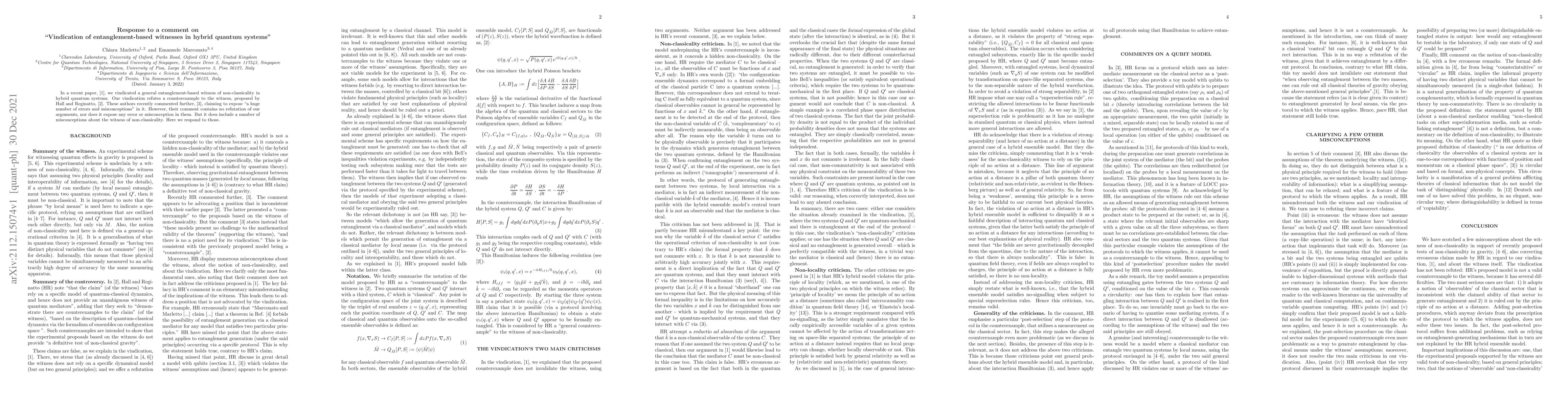 This paper refutes a recent critique by Hall and Reginatto, who claimed numerous errors in the authors' vindication of an entanglement-based witness for non-classicality in hybrid quantum systems. The authors clarify that the critique contains no valid refutations or errors but does highlight several misconceptions about the witness.