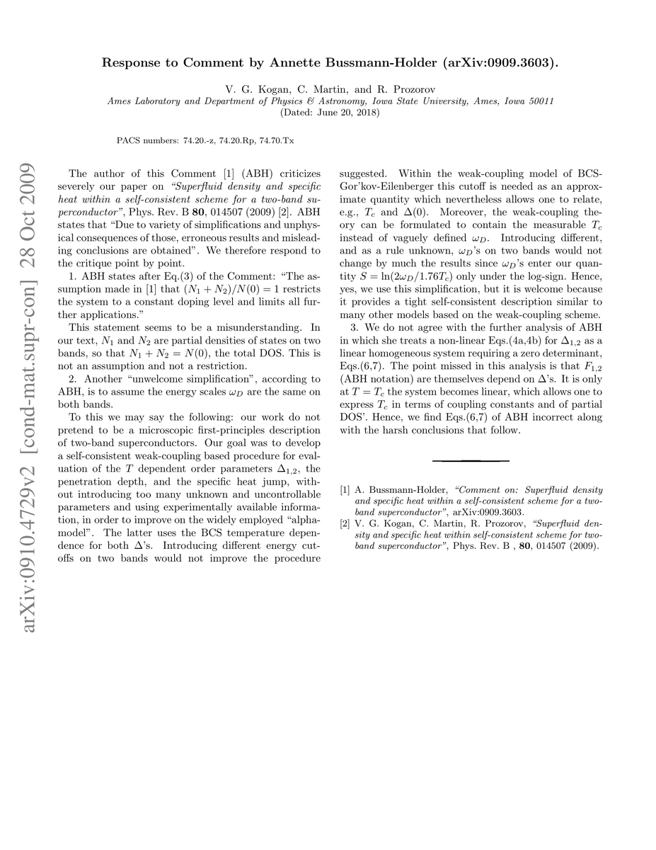 Response to Comment by A. Bussmann-Holder (arXiv:0909.3603)