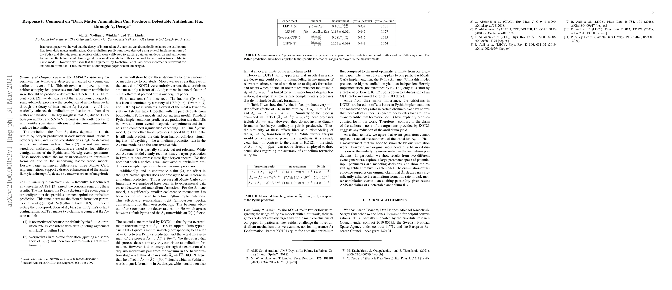 This paper defends the authors' previous findings that dark matter annihilation can produce a detectable antihelium flux through $\bar{\Lambda}_b$ decays, countering Kachelriess et al.'s critique that suggests a smaller flux. The authors assert that Kachelriess et al.'s arguments are flawed or irrelevant, thus maintaining the integrity of their original results.