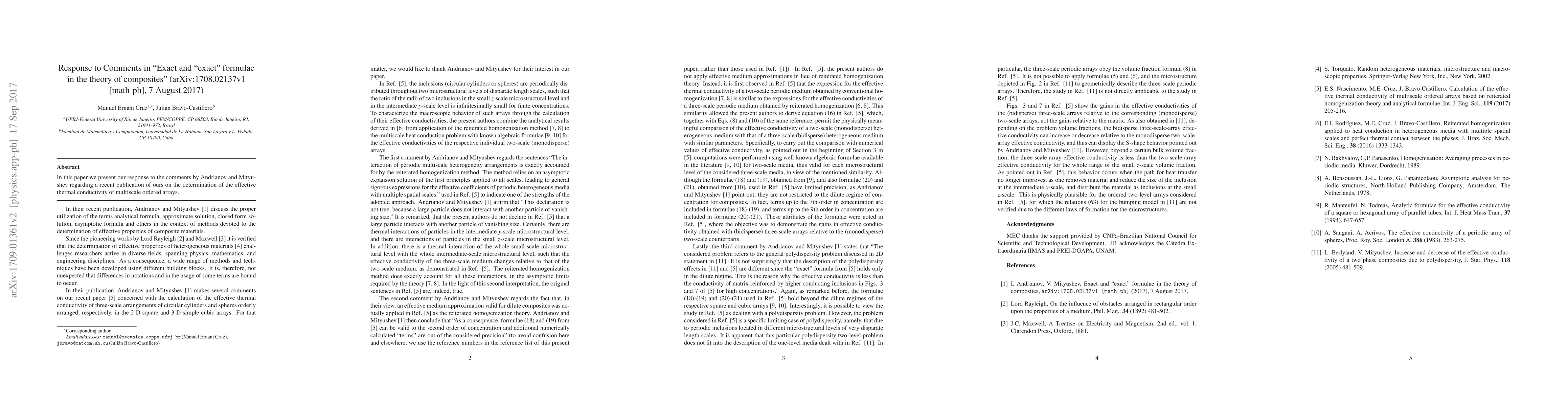 In this paper we present our response to the comments by Andrianov and Mityushev regarding a recent publication of ours on the determination of the effective thermal conductivity of multiscale ordered arrays.