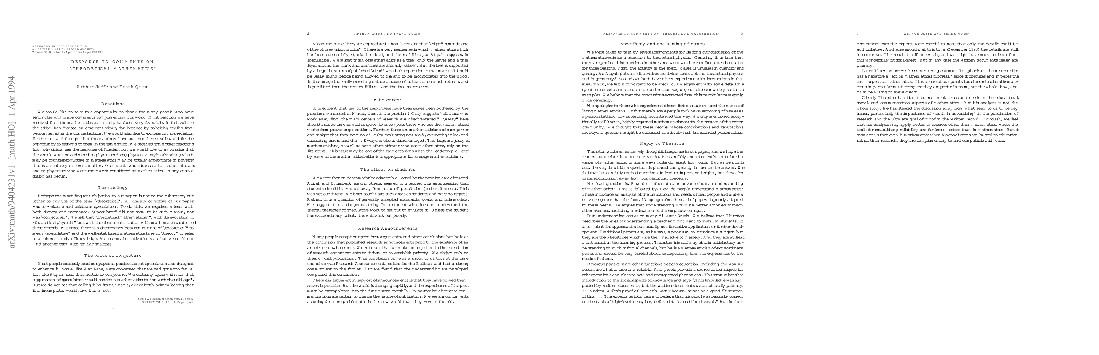 The authors discuss various objections and rejoinders in the collected responses [math.HO/9404229,math.HO/9404236] to their original article on the relationship between mathematics and theoretical physics [math.HO/9307227].