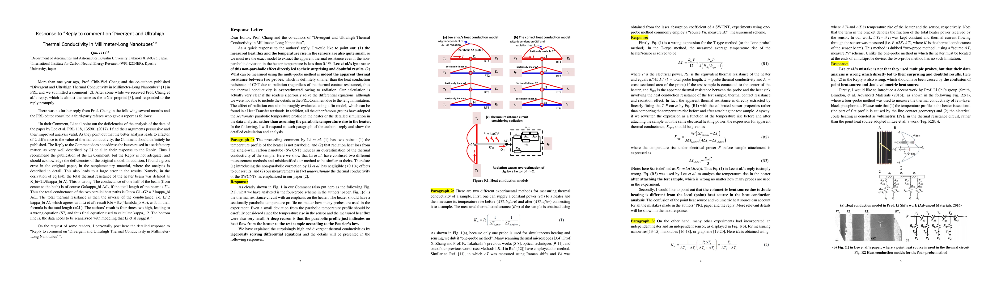 Researchers investigated thermal conductivity in long nanotubes, finding divergent and ultrahigh values that challenge current understanding, and provided a detailed response to comments on their previous work.