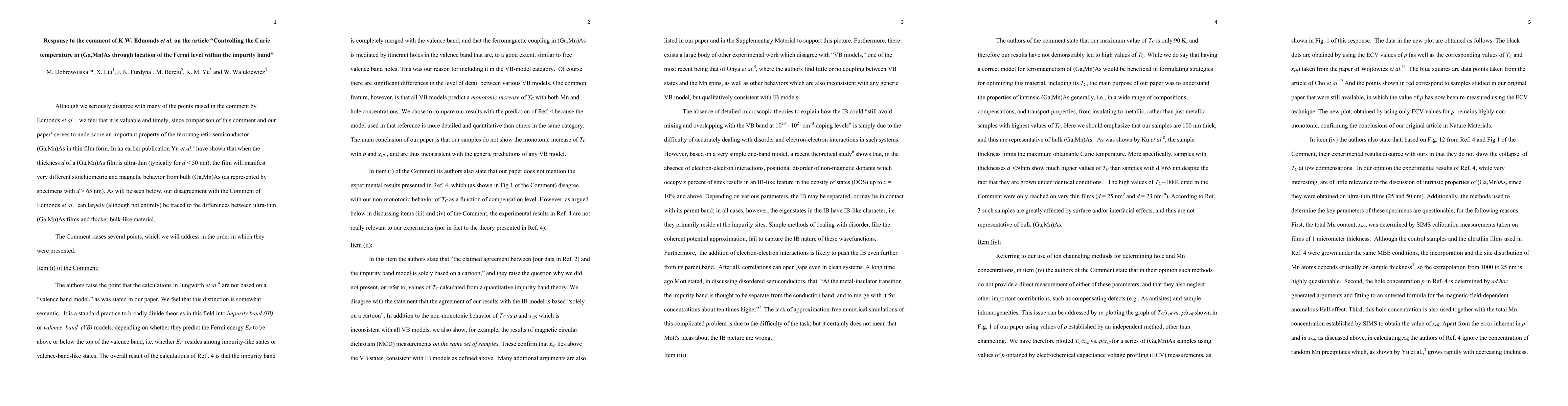 This paper refutes several points raised by Edmonds et al. regarding the control of the Curie temperature in (Ga,Mn)As, but acknowledges the value of the discussion in highlighting a crucial property of ferromagnetic semiconductor thin films.