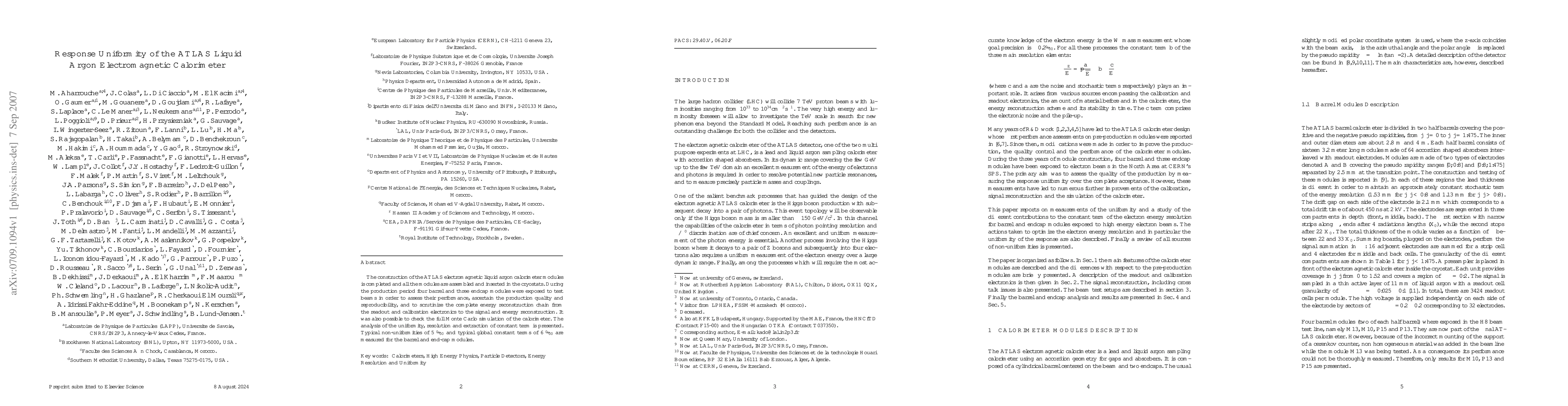 The ATLAS Liquid Argon electromagnetic calorimeter modules were tested in beam and showed uniform response with non-uniformities of 0.5% and global constant terms of 0.6%, confirming production quality and energy reconstruction accuracy.