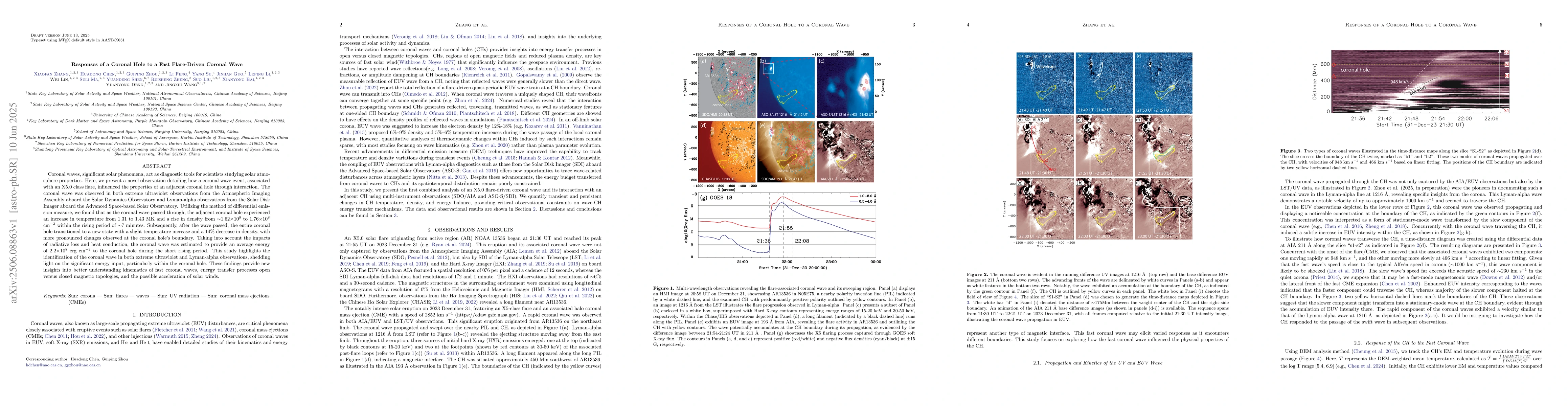 A coronal wave associated with an X5.0 flare significantly influenced a nearby coronal hole, causing it to heat up and expand before returning to a stable state with reduced density.
