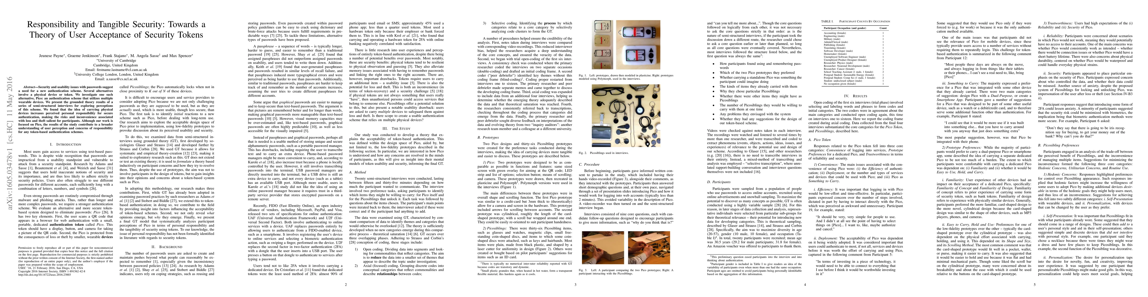 Researchers studied user perceptions of a token-based authentication scheme using wearable devices, finding that carrying physical tokens increases users' sense of personal responsibility for secure authentication. This study contributes to a broader understanding of user concerns about token-based schemes.