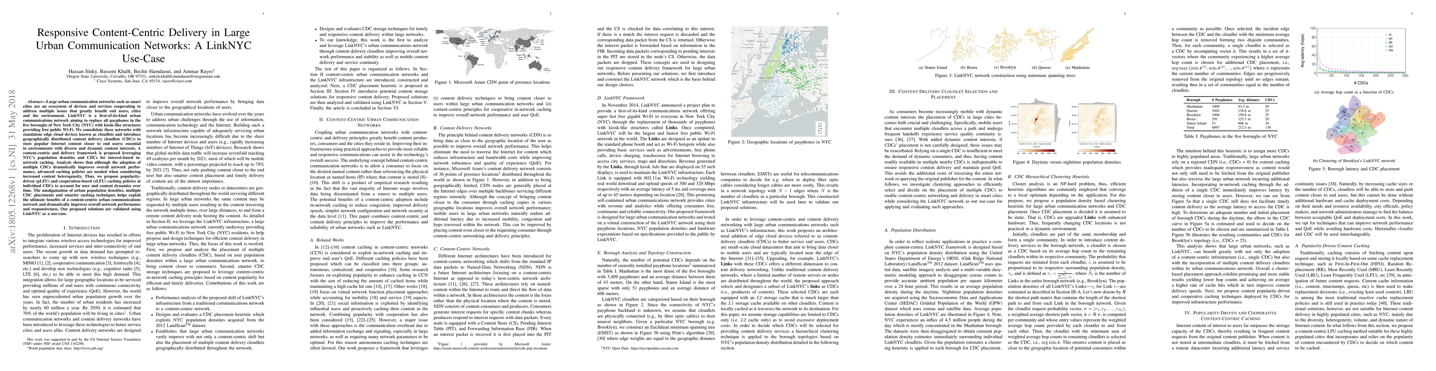 Large urban communication networks such as smart cities are an ecosystem of devices and services cooperating to address multiple issues that greatly benefit end users, cities and the environment. LinkNYC is a first-of-its-kind urban communications network aiming to replace all payphones in the five boroughs of New York City (NYC) with kiosk-like structures providing free public Wi-Fi. We consolidate these networks with standalone edge cloud devices known as cloudlets and introduce geographically distributed content delivery cloudlets (CDCs) to store popular Internet content closer to end users; essential in environments with diverse and dynamic content interests. A content-centric and delivery framework is proposed leveraging NYC's population densities and CDCs for interest-based in-network caching. Analysis shows that although the adoption of multiple CDCs dramatically improves overall network performance, advanced caching policies are needed when considering increased content heterogeneity. Thus, we propose popularity-driven (pLFU) and cooperation-based (sLFU) caching policies at individual CDCs to account for user and content dynamics over time. The amalgamation of urban population densities, multiple CDC placements and smarter caching techniques help exploit the ultimate benefits of a content-centric urban communications network and dramatically improves overall network performance and responsiveness. Our proposed solutions are validated using LinkNYC as a use-case.