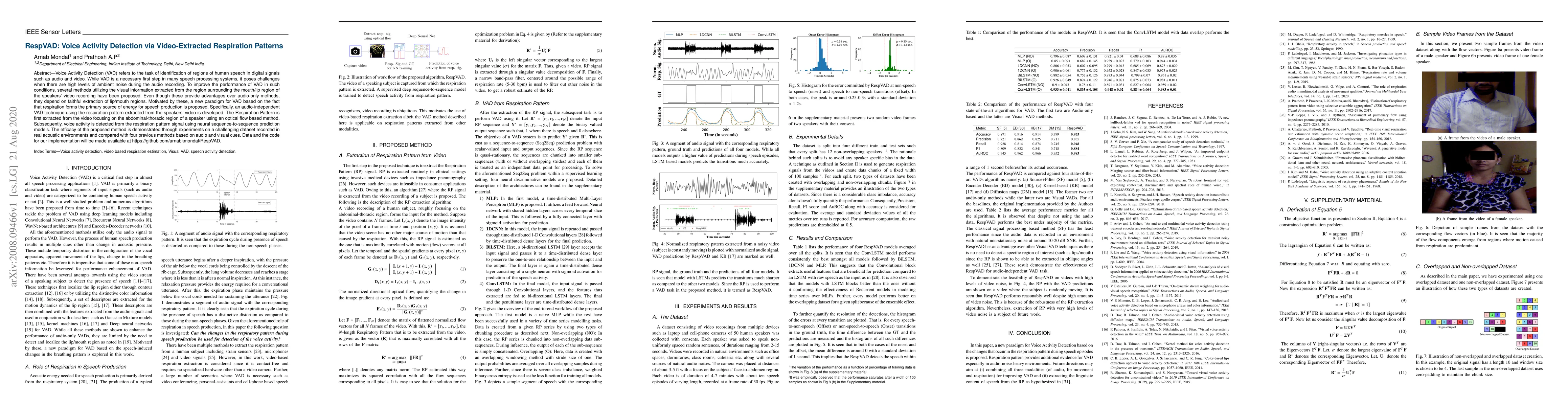 The paper presents a novel approach for VAD using respiration patterns extracted from video, employing deep learning models for sequence prediction.