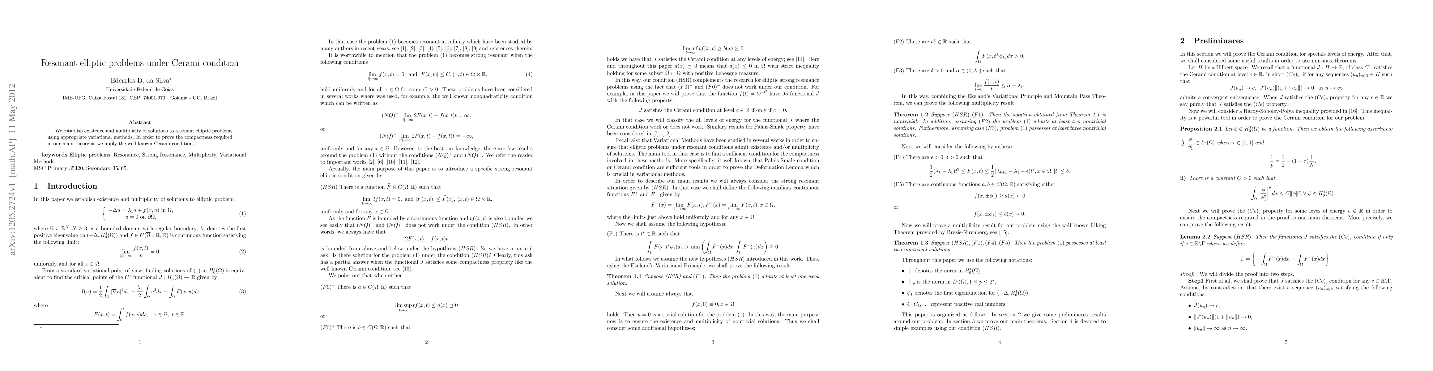 This paper establishes existence and multiplicity of solutions for an elliptic resonant problem under Dirichlet boundary conditions.