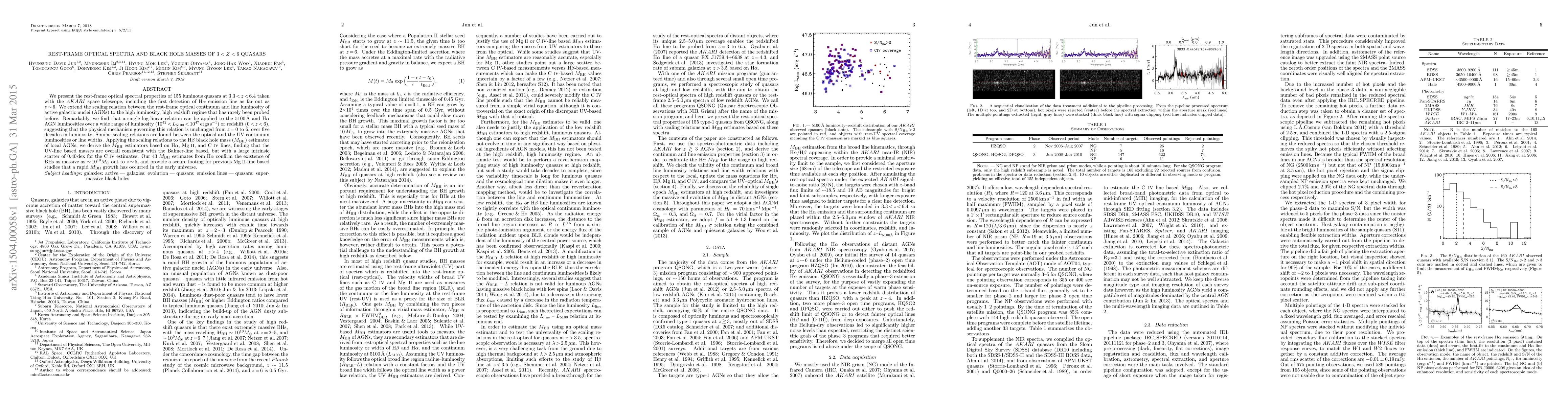 We present the rest-frame optical spectral properties of 155 luminous quasars