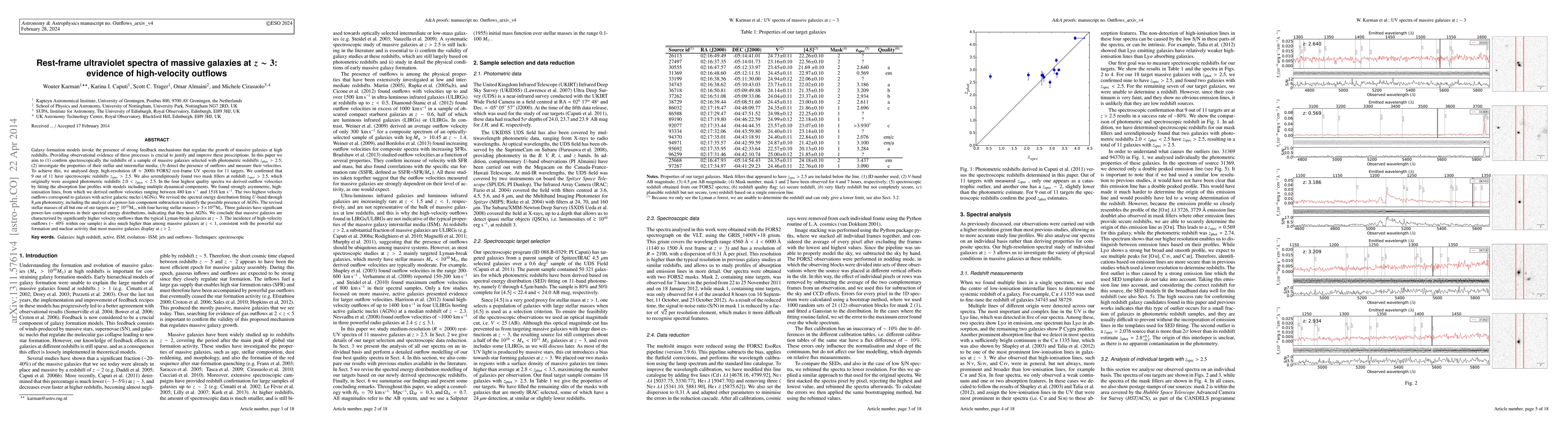 This study confirms high-velocity outflows in massive galaxies at z=3, with outflow velocities ranging from 480 to 1518 km/s, indicating strong feedback mechanisms regulating their growth. The presence of AGN in galaxies with the highest outflow velocities suggests a link between nuclear activity and outflow dynamics.