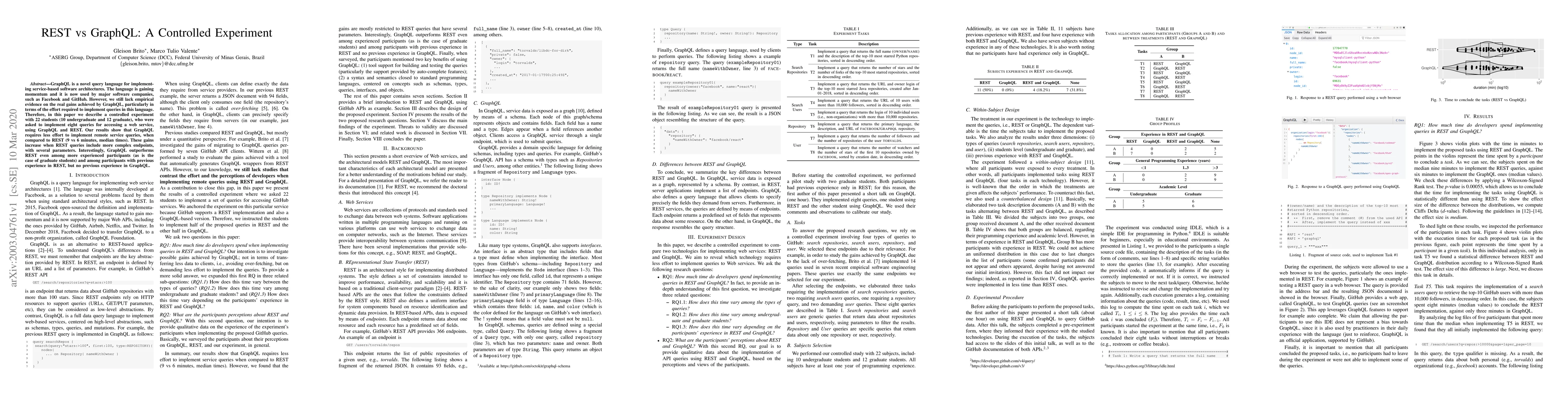 This study compares the effort required to implement queries using GraphQL versus REST through a controlled experiment with 22 students. Results indicate that GraphQL requires less time to implement queries, with median times of 6 minutes compared to 9 minutes for REST, especially for complex endpoints.