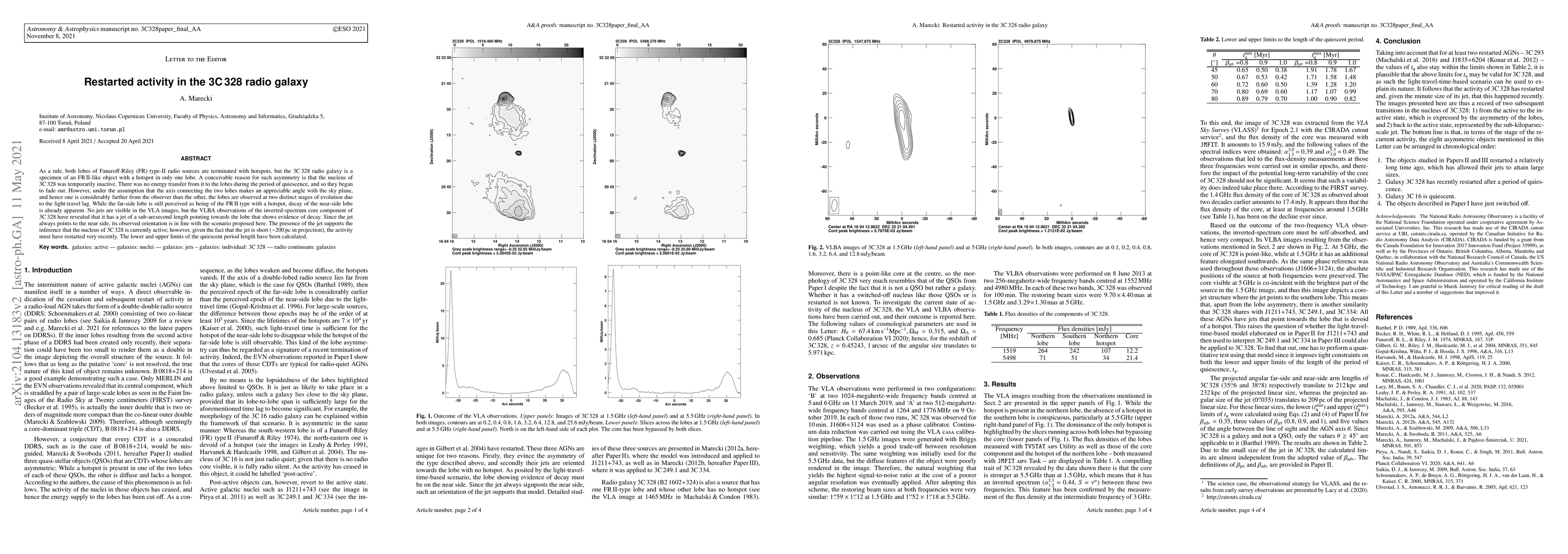 Researchers found that the 3C328 radio galaxy had a temporary quiescence period, with its nucleus restarting activity recently, indicated by a short jet pointing towards the decaying lobe.
