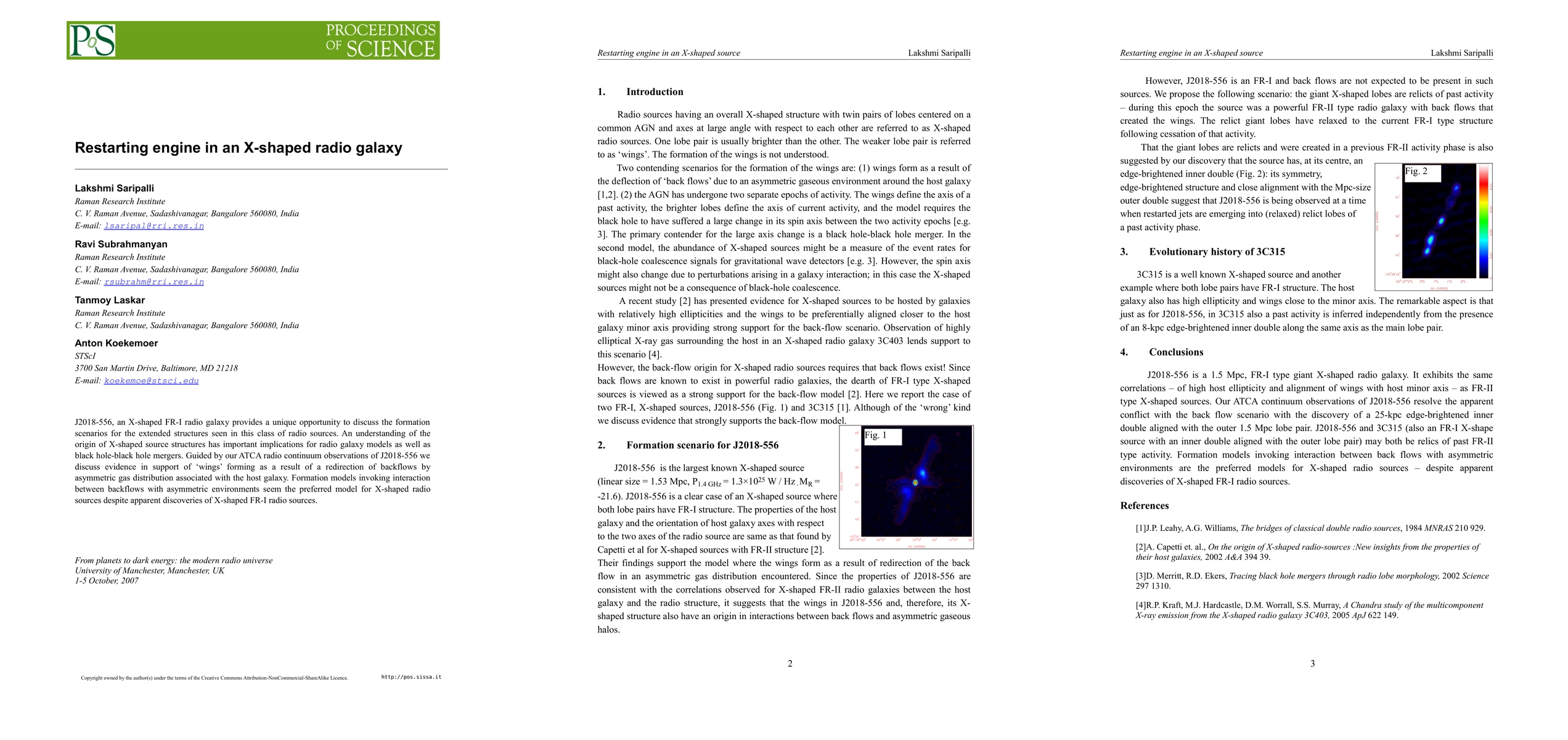 J2018-556, an X-shaped FR-I radio galaxy provides a unique opportunity to discuss the formation scenarios for the extended structures seen in this class of radio sources. An understanding of the origin of X-shaped source structures has important implications for radio galaxy models as well as black hole-black hole mergers. Guided by our ATCA radio continuum observations of J2018-556 we discuss evidence in support of 'wings' forming as a result of a redirection of backflows by asymmetric gas distribution associated with the host galaxy. Formation models invoking interaction between backflows with asymmetric environments seem the preferred model for X-shaped radio sources despite apparent discoveries of X-shaped FR-I radio sources.