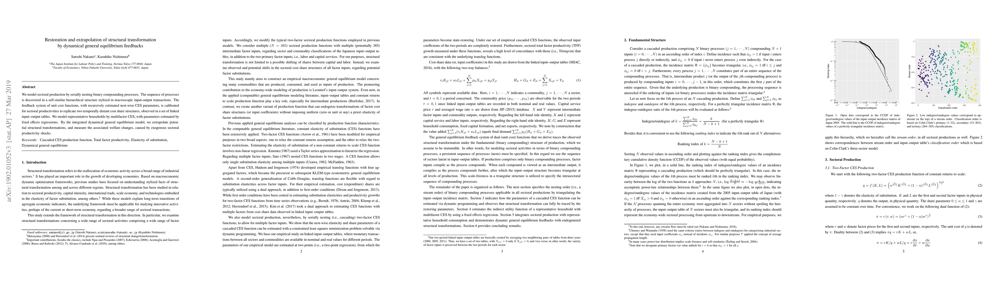 This paper models sectoral production using nested compounding processes and calibrates a dynamic general equilibrium model to replicate historical cost share structures. It extrapolates potential structural transformations and welfare changes due to sectoral productivity shocks using this integrated framework.